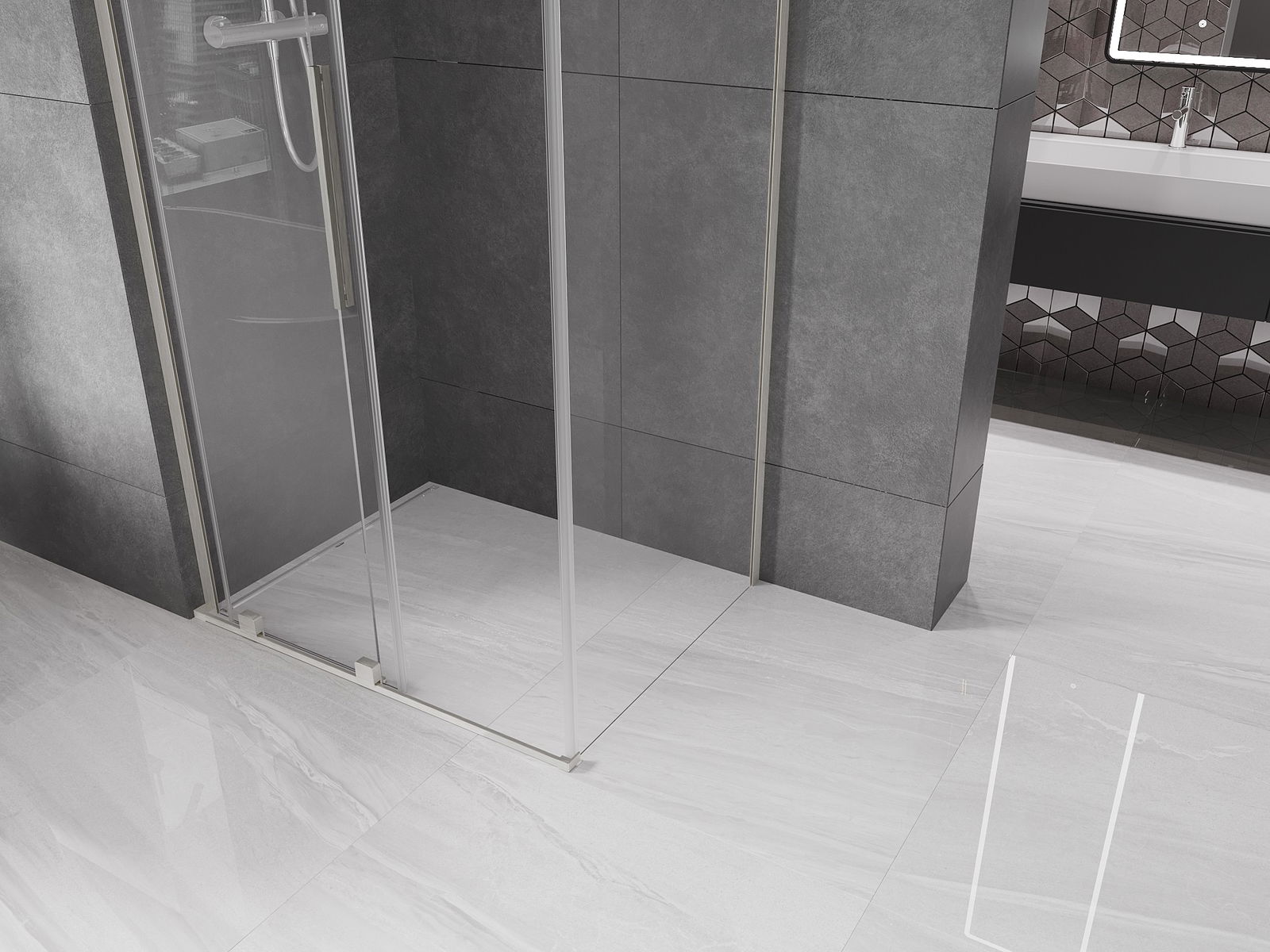 Pega prática e confortável feita de aço inoxidável. A forma moderna, combinada com o acabamento adaptado à cor dos perfis, dá ao conjunto uma aparência moderna e estilosa, realçando a estética de qualquer casa de banho.