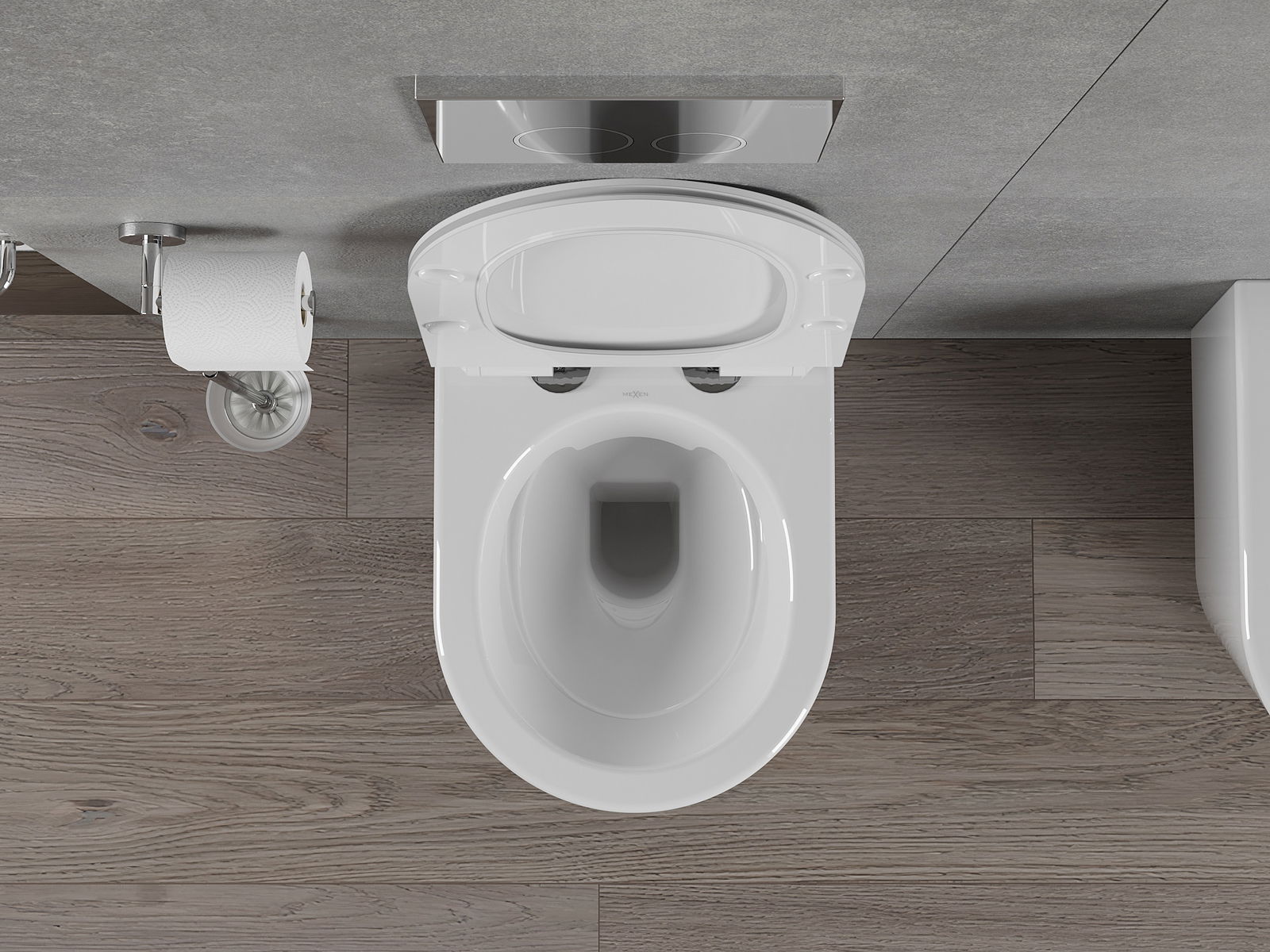 Sistema moderno, no qual todos os elementos de montagem foram ocultados. Não é apenas uma solução estética, mas também muito prática. Facilita a manutenção da casa de banho limpa e assegura um aspeto arrumado.