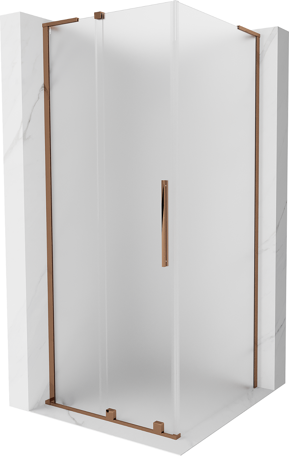 Mexen Velar L cabine de duche com porta de correr 100 x 100 cm, vidro fosco, ouro rosa - 871-100-100-33-60