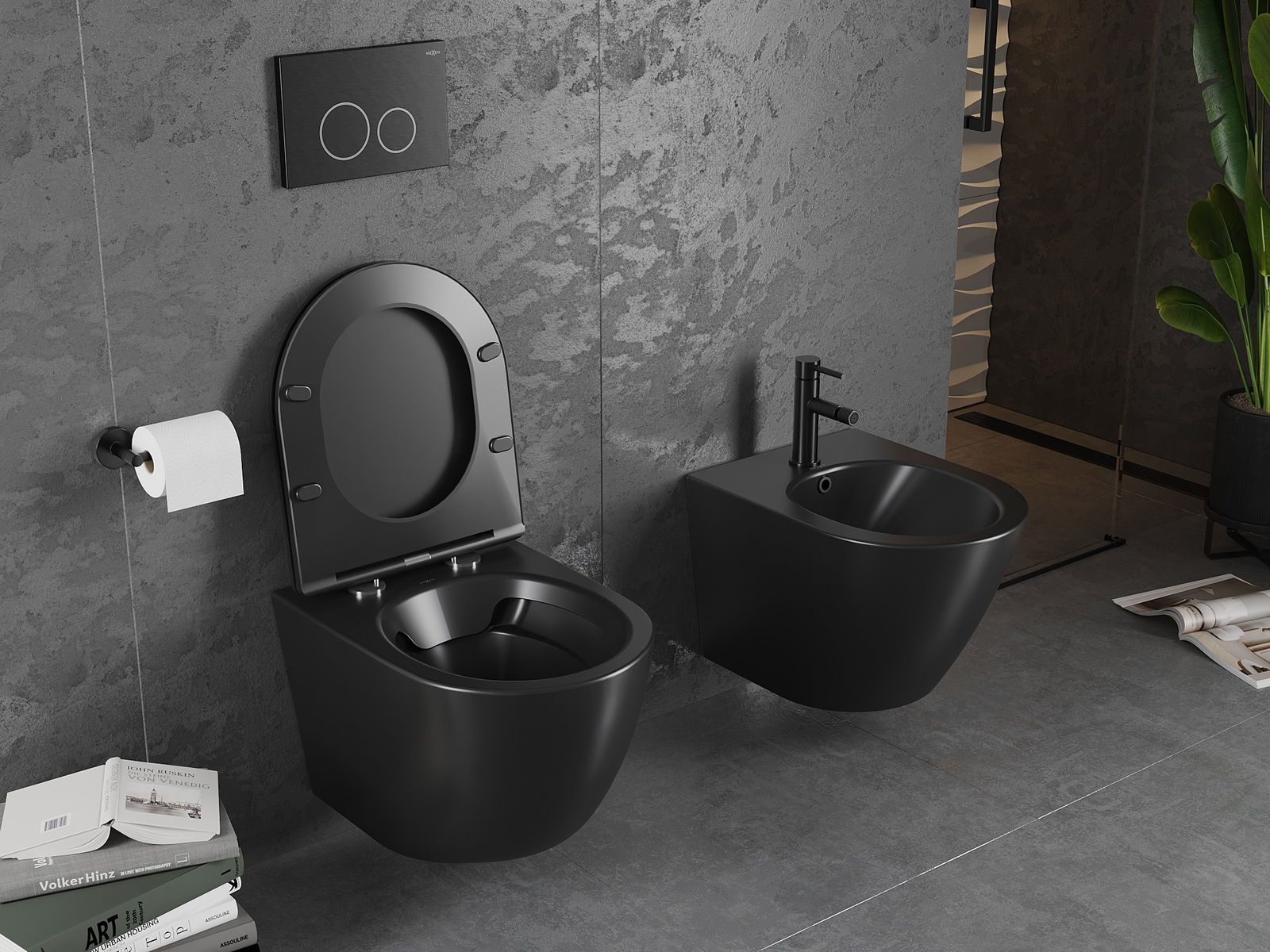 Sistema moderno, no qual todos os elementos de montagem foram ocultados. Não é apenas uma solução estética, mas também muito prática. Facilita a manutenção da casa de banho limpa e assegura um aspeto arrumado.