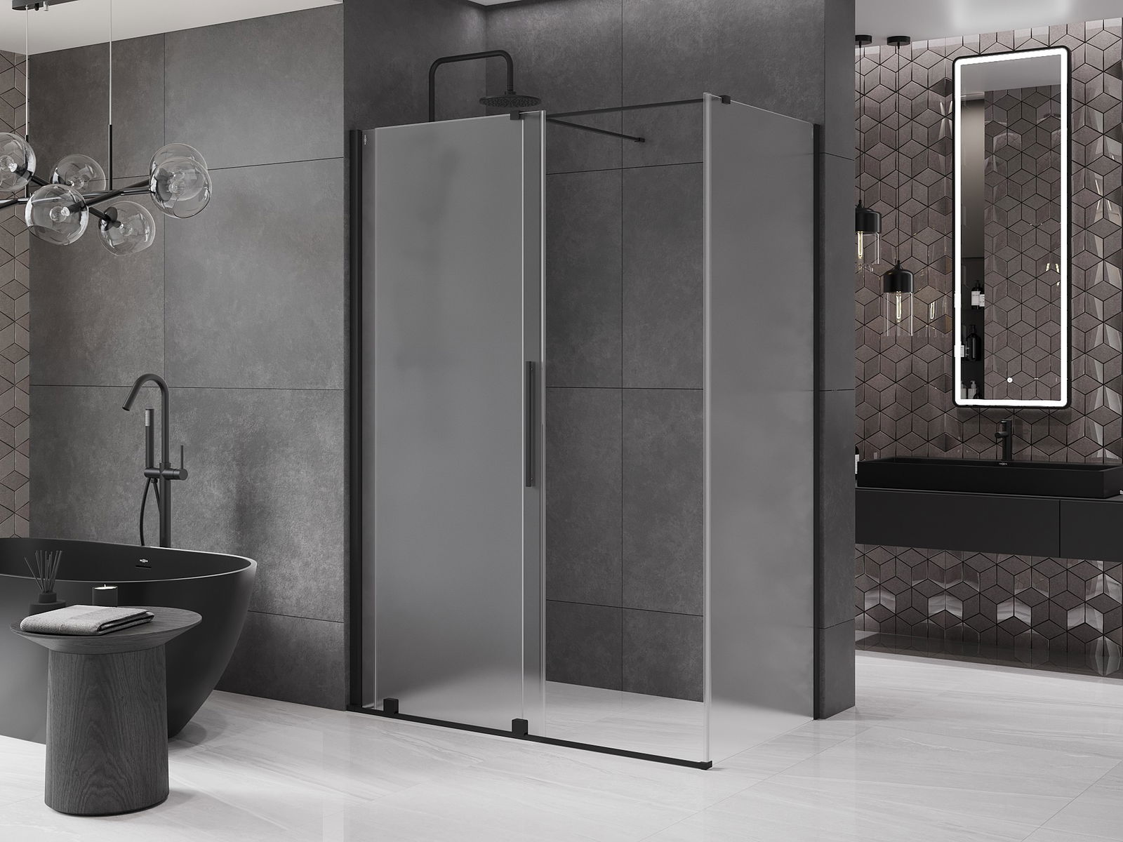 Pega prática e confortável feita de aço inoxidável. A forma moderna, combinada com o acabamento adaptado à cor dos perfis, dá ao conjunto uma aparência moderna e estilosa, realçando a estética de qualquer casa de banho.