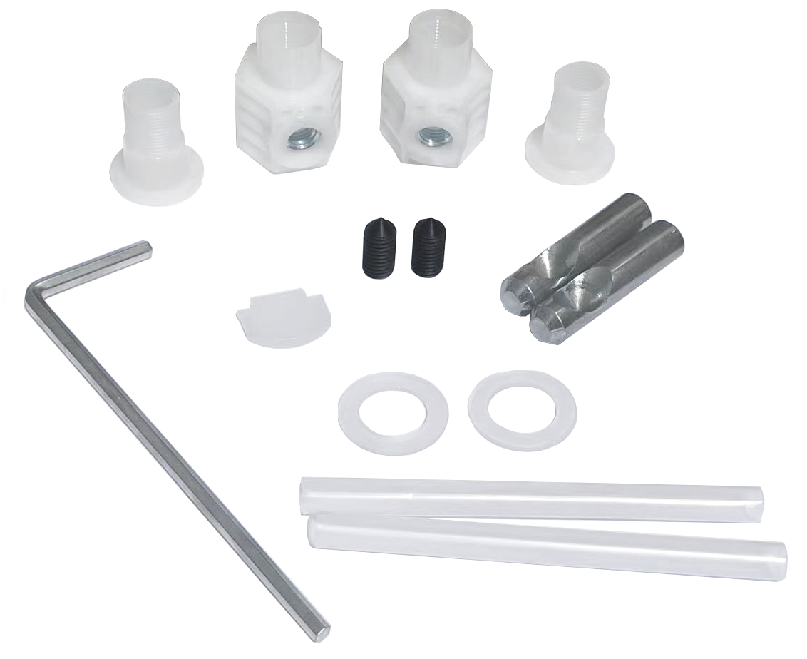 Conjunto de elementos de fixação que permitem a fácil instalação de sanitas e bidés.