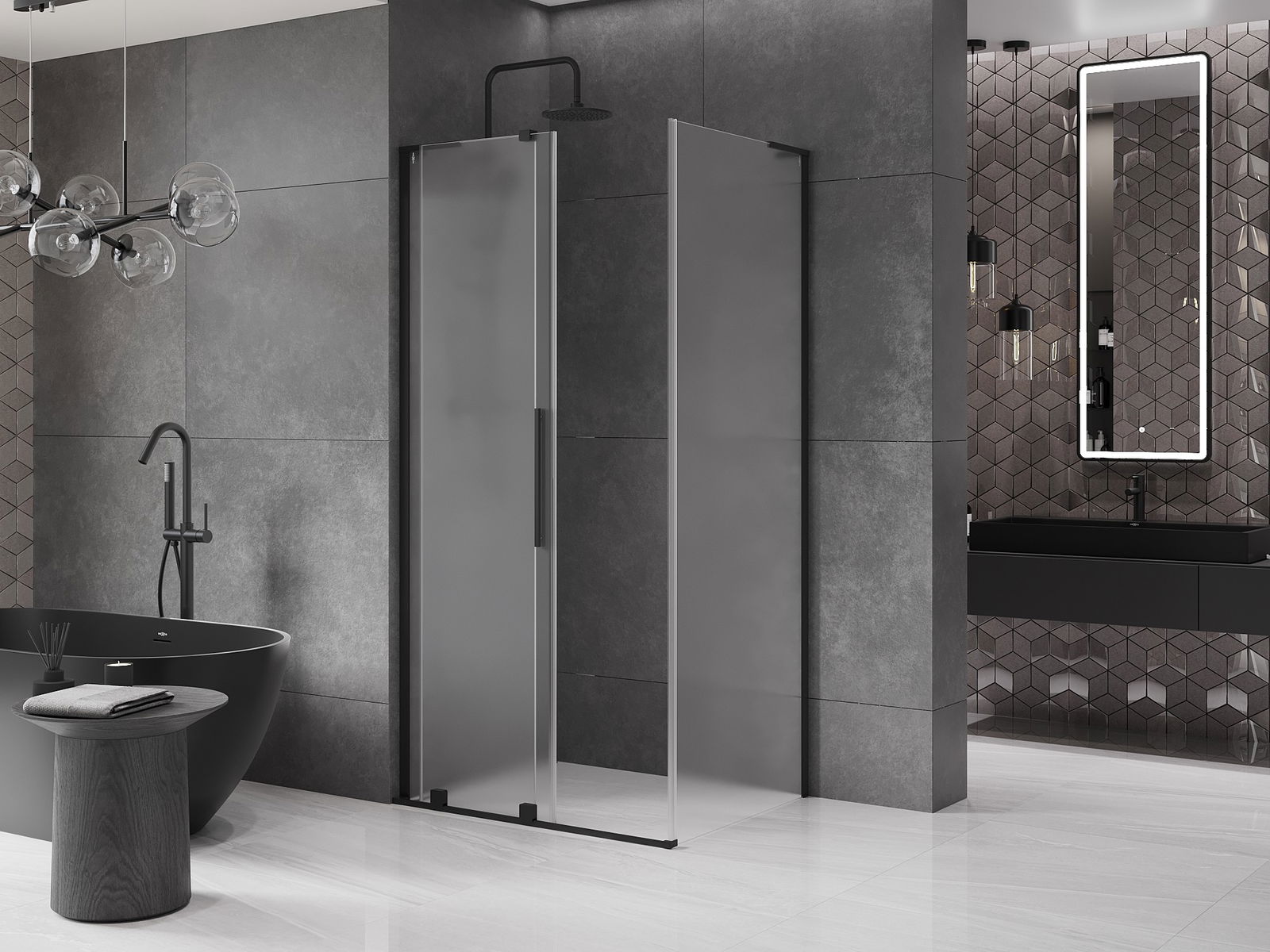 Mexen Velar L cabine de duche deslizante 90 x 120 cm, fosco, preta - 871-090-120-33-70