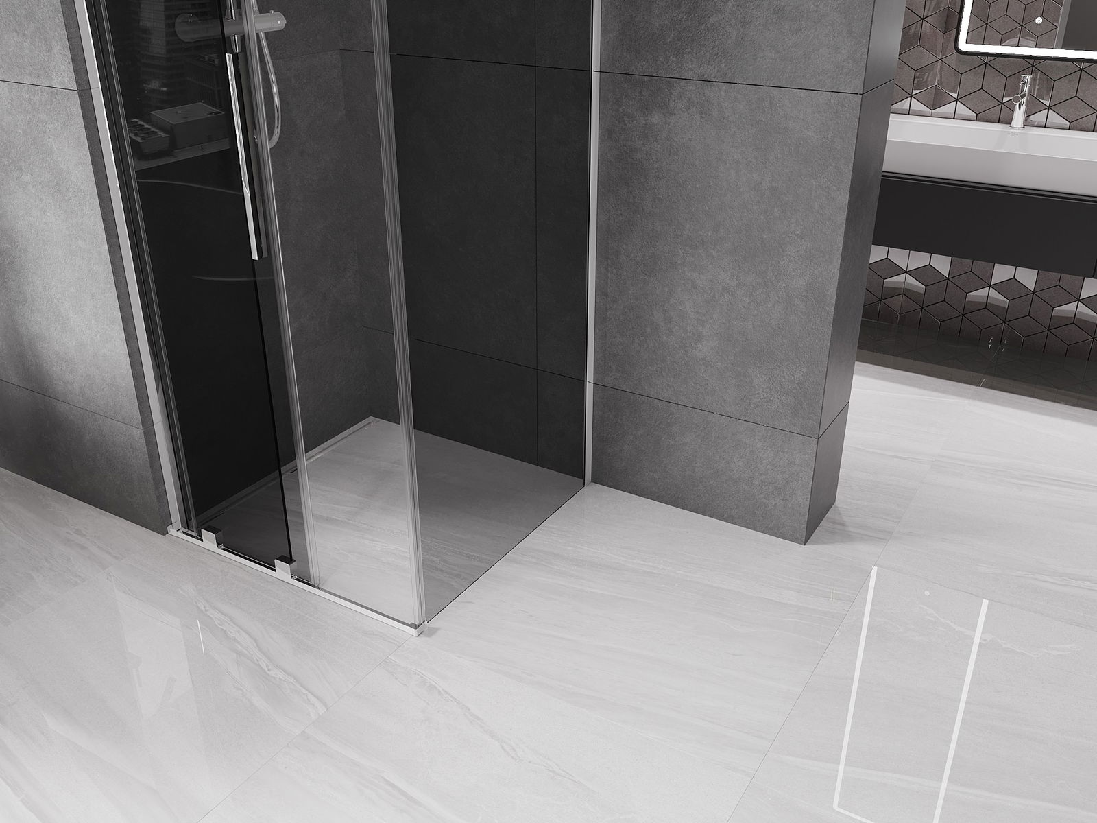 Pega prática e confortável feita de aço inoxidável. A forma moderna, combinada com o acabamento adaptado à cor dos perfis, dá ao conjunto uma aparência moderna e estilosa, realçando a estética de qualquer casa de banho.