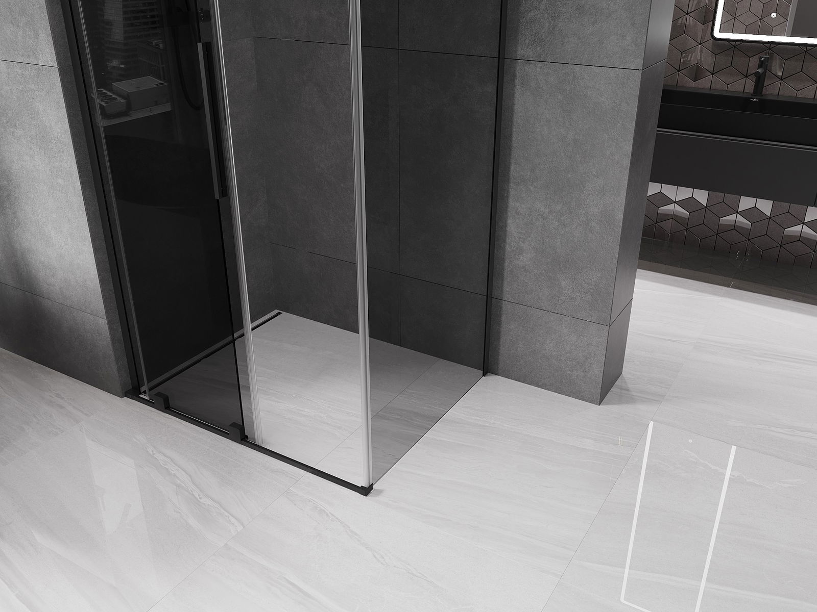 Mexen Velar L cabine de duche deslizante 120 x 90 cm, grafite, preta - 871-120-090-43-70