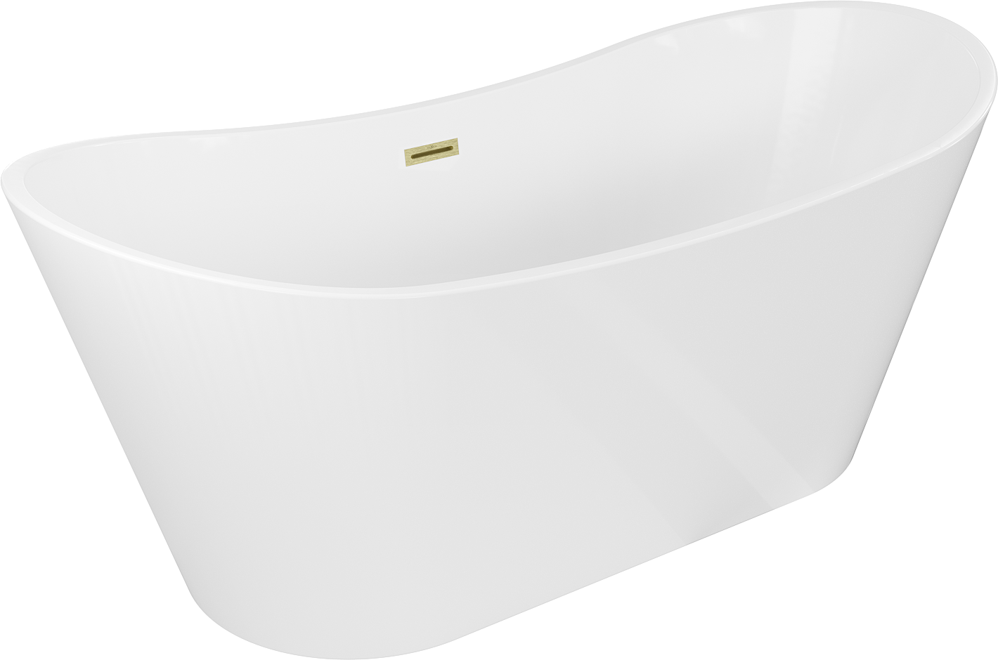 Mexen Montana banheira independente 150 x 75 cm, branca, transbordo dourado escovado - 52011507500-55