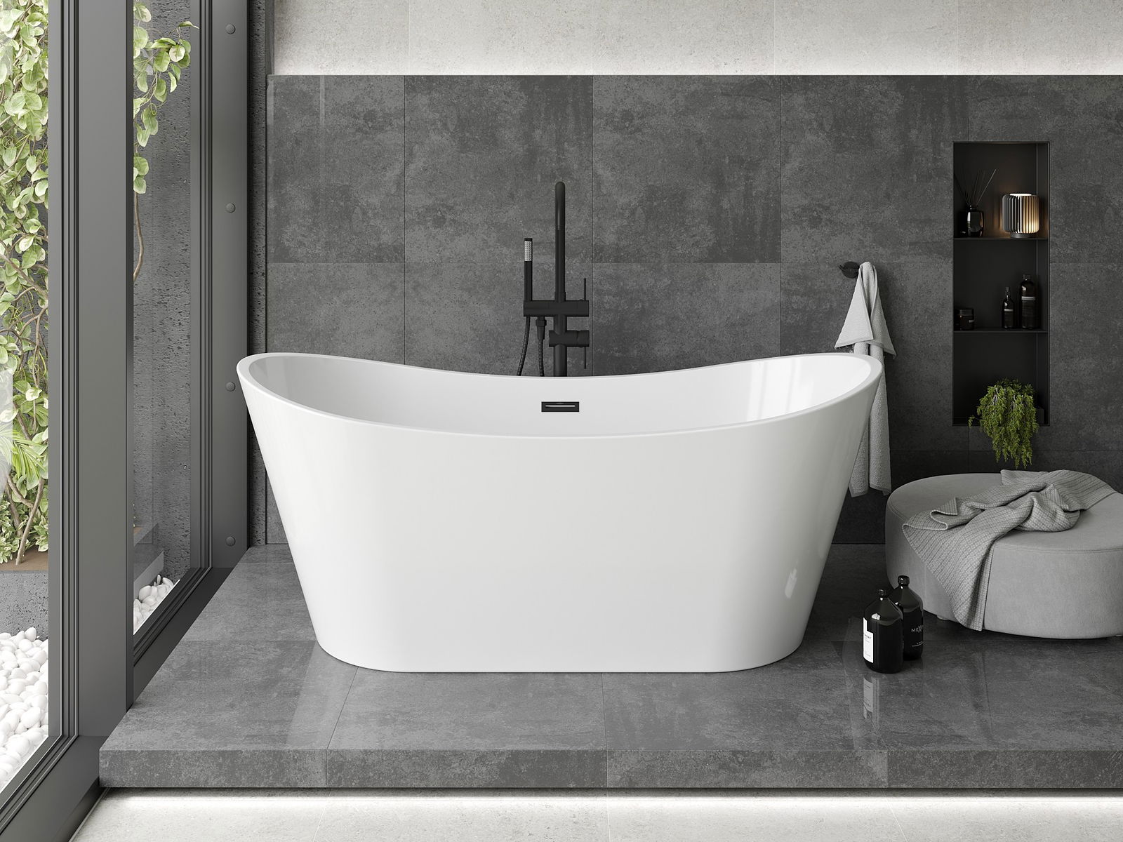A banheira independente 150 x 75 cm da série Montana é a combinação ideal de estilo e funcionalidade. Feita de acrílico sanitário, caracteriza-se por uma forma oval e uma cor branca elegante combinada com acabamento preto. Graças à alta resistência ao embaciamento e radiação UV, mantém a sua aparência por mais tempo. Além disso, possui uma abertura de transbordo e vem com sifão e tampa click-clack, o que a torna fácil de instalar e usar.
