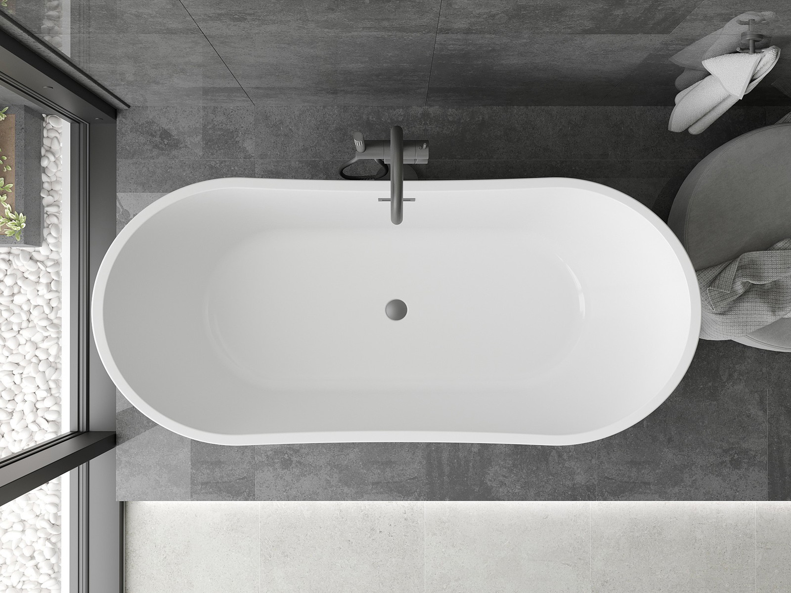A banheira autoportante 150 x 75 cm é a escolha ideal para casas de banho modernas. Feita de acrílico sanitário, garante durabilidade e facilita a manutenção da limpeza. A sua forma oval e superfície brilhante nas cores branca e preta integram-se perfeitamente em várias decorações. Características adicionais incluem a abertura de transbordamento e o acabamento impressionante em metal gun. A banheira oferece a conveniência da montagem autoportante, tornando-a um elemento funcional e estético para a casa de banho.