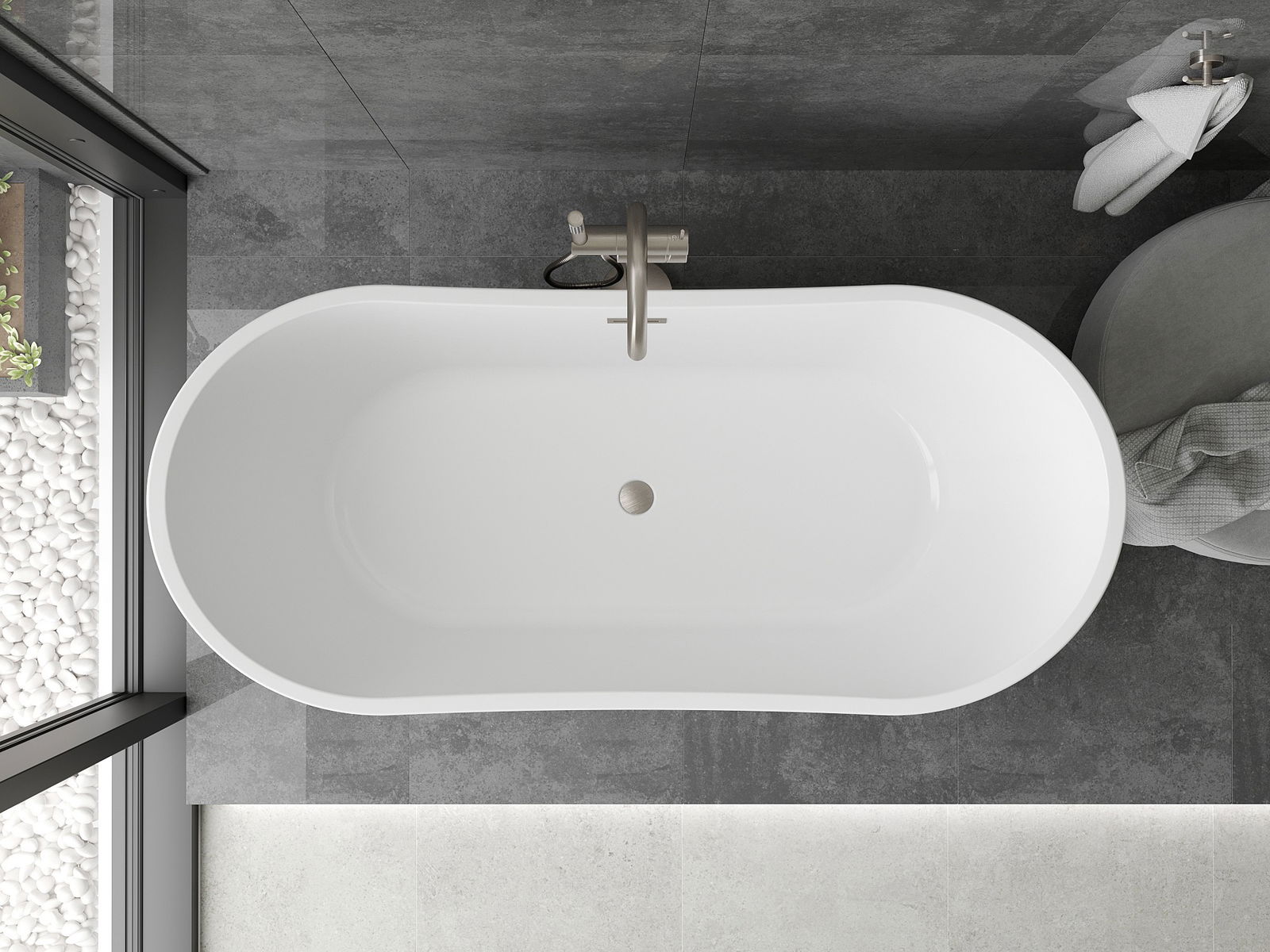 Mexen Montana é uma banheira independente excepcional com dimensões de 170 x 80 cm, feita de acrílico sanitário, o que garante alta qualidade e durabilidade. Sua superfície branca elegante combinada com detalhes de níquel escovado a torna um complemento ideal para casas de banho modernas. A banheira possui uma abertura de transbordamento e é resistente ao embaçamento e à radiação UV, o que prolonga sua estética. Graças às suas dimensões e forma oval, oferece o máximo conforto de uso.