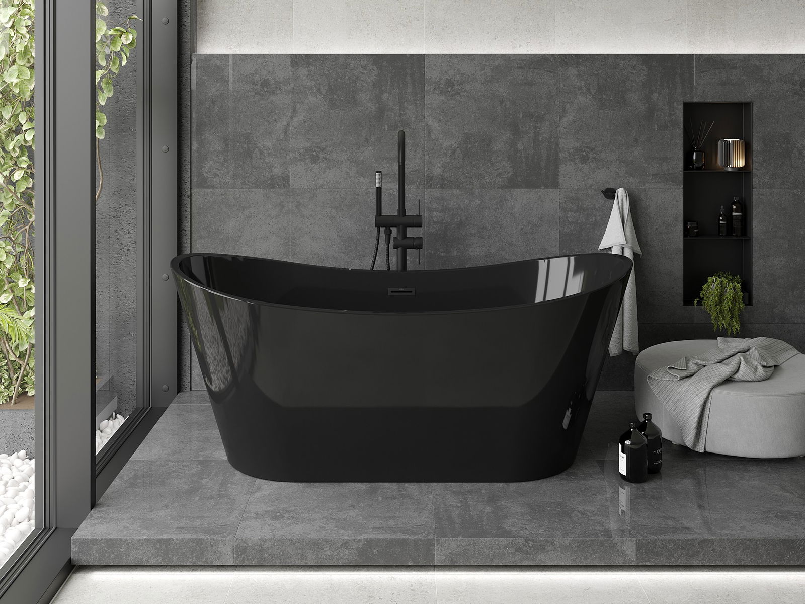 A Mexen Montana é uma elegante banheira independente, com dimensões de 170 x 80 cm, que combina estilo e funcionalidade. Feita de acrílico sanitário de alta qualidade, na cor preta, com uma superfície de alto brilho. A banheira possui uma prática abertura de extravasor e sifão incluído, e seu material resistente ao embaciamento garante durabilidade por anos. Graças à sua forma oval, adapta-se perfeitamente a casas de banho modernas, oferecendo conforto e relaxamento após um longo dia.