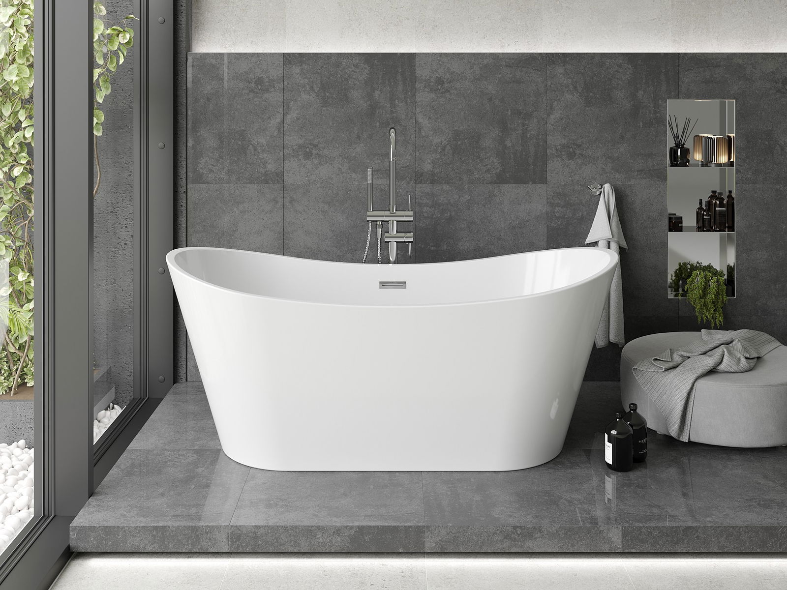 Mexen Montana é uma banheira autónoma moderna com dimensões de 180 x 80 cm, feita de acrílico sanitário numa elegante cor branca. Graças ao escoamento localizado no meio e ao prático transbordo, proporciona conforto de uso. A sua altura é de 72 cm e a profundidade de 44,5 cm, tornando-a ideal para banhos relaxantes. A banheira também se caracteriza pela resistência ao embaciamento e radiação UV, e o acabamento cromado adiciona uma aparência moderna.
