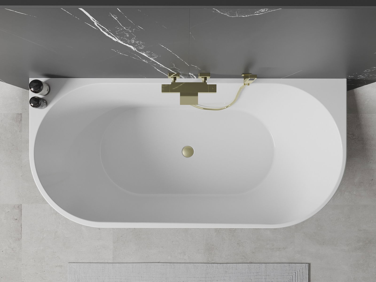 Mexen Oval banheira isolada encostada 150 x 75 cm, branca/preta, extravasor dourado escovado - 52671507575-55