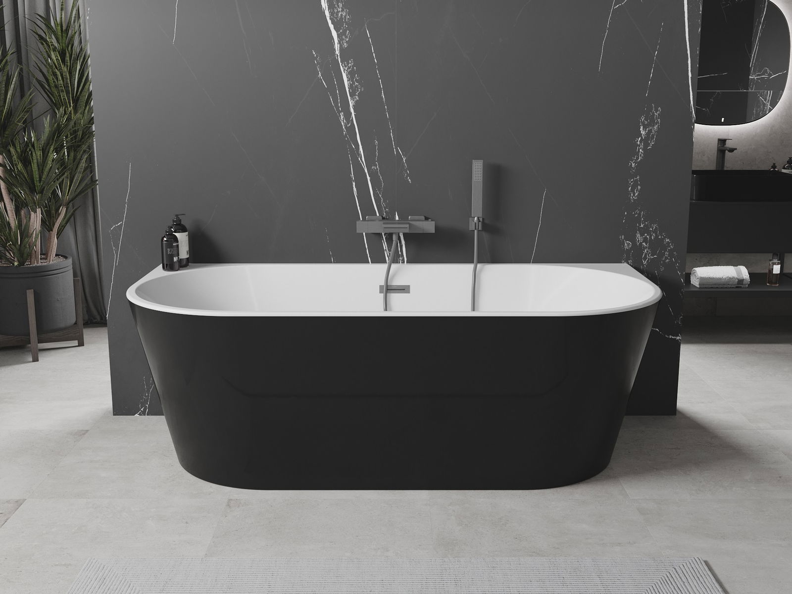 A banheira freestanding oval Mexen com dimensões de 160 x 80 cm destaca-se pela elegante combinação de cores branca e preta e pelo acabamento moderno em cinza metálico escovado. Feita de acrílico sanitário, é resistente ao embaciamento e à radiação UV. Com montagem encostada e uma inovadora abertura de transbordo, a banheira oferece comodidade de uso. O conjunto inclui sifão e tampa click-clack, tornando este produto uma escolha prática e estilosa para qualquer casa de banho.