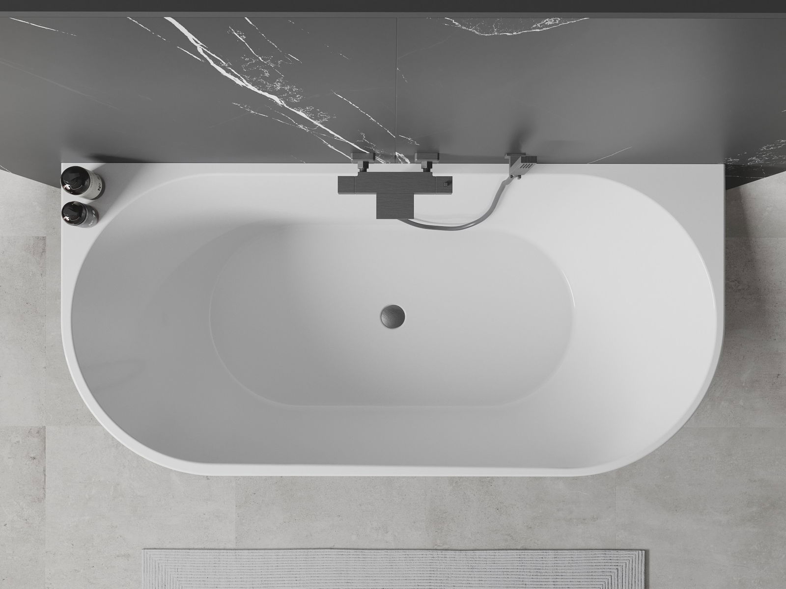 Mexen Oval banheira independente encostada à parede 180 x 80 cm, branca, transbordo cinza gun escovado - 52671808000-66