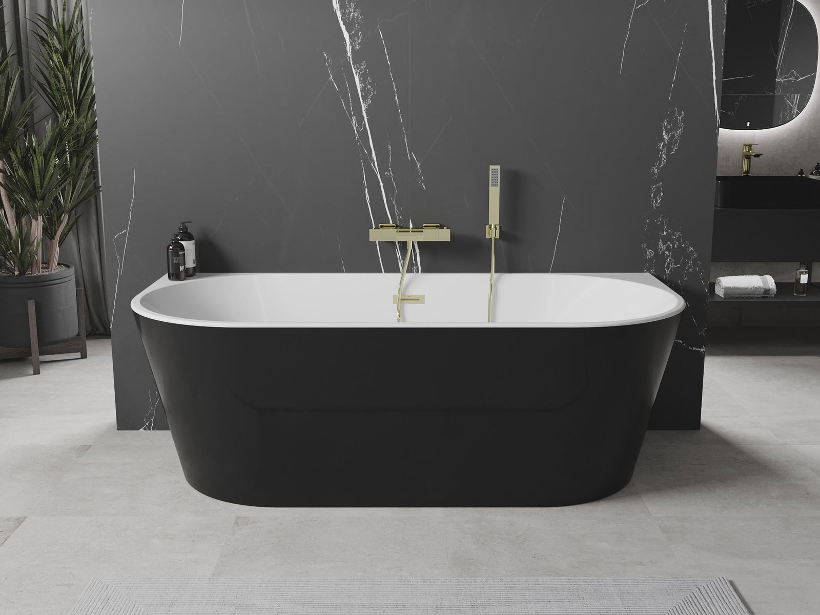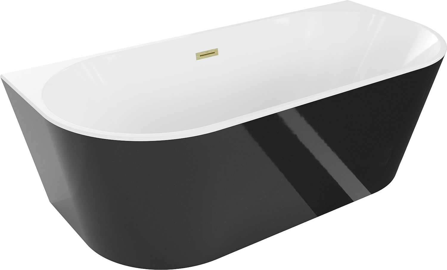 Mexen Oval banheira independente encostada à parede 180 x 80 cm, branco/preto, transbordamento dourado escovado