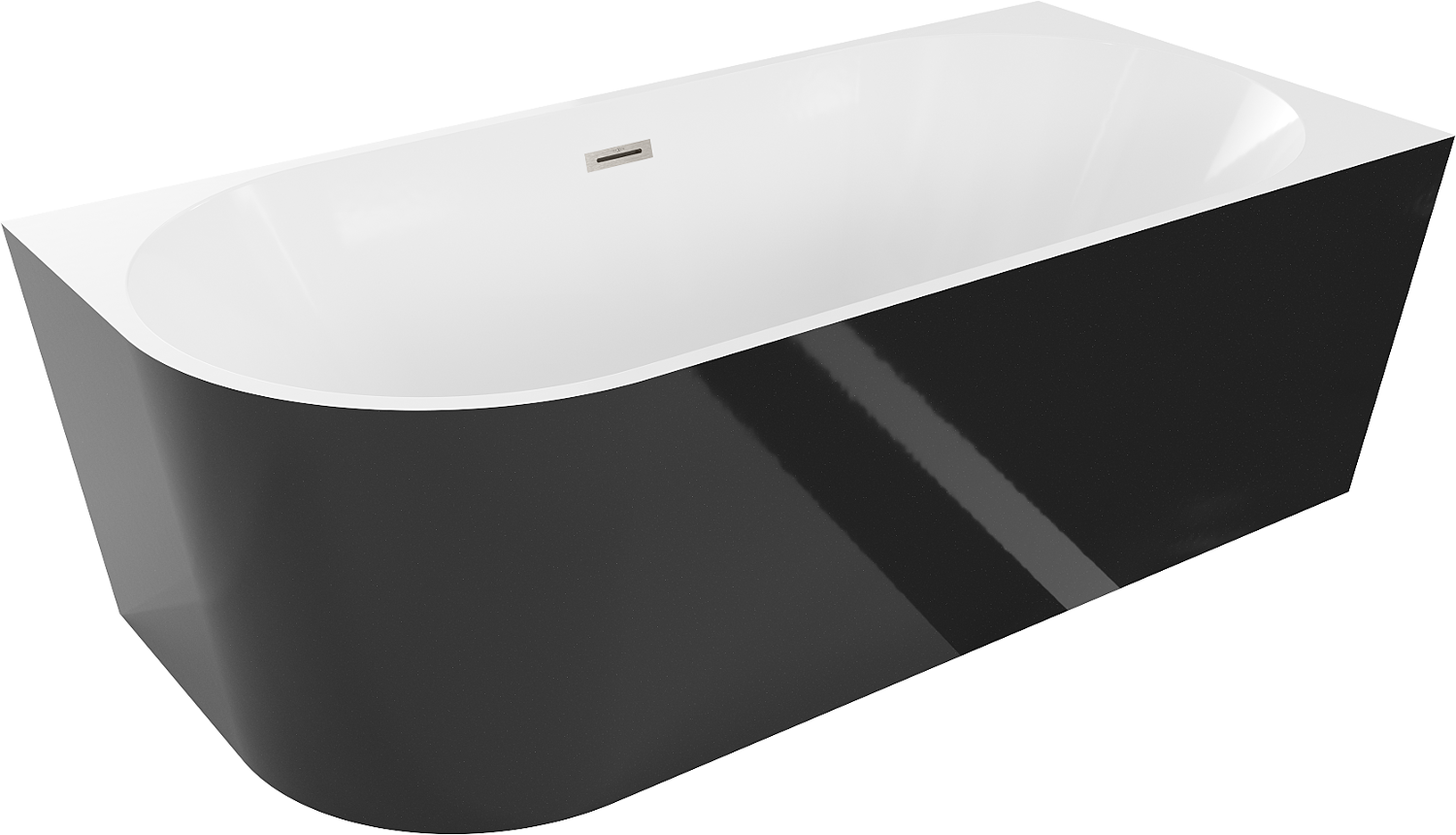 Mexen Mia banheira autónoma de canto direito 150 x 75 cm, branca/preta, transbordo níquel escovado - 52691507575P-97