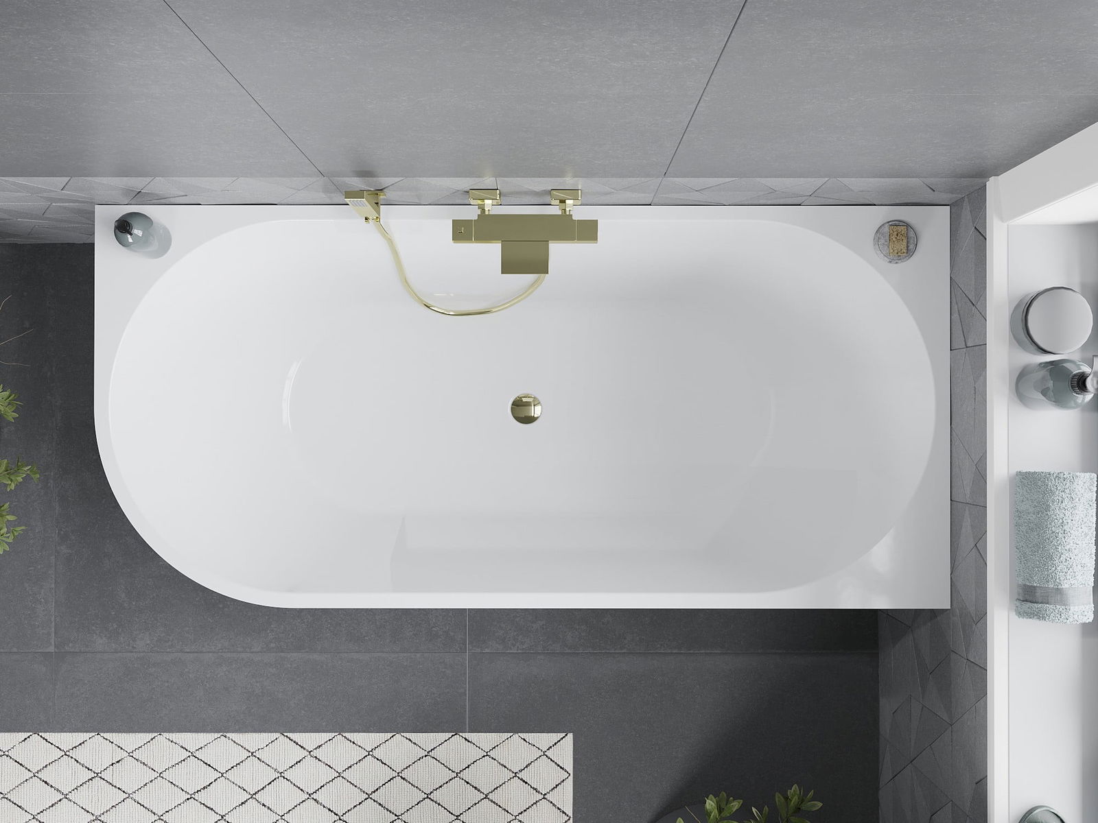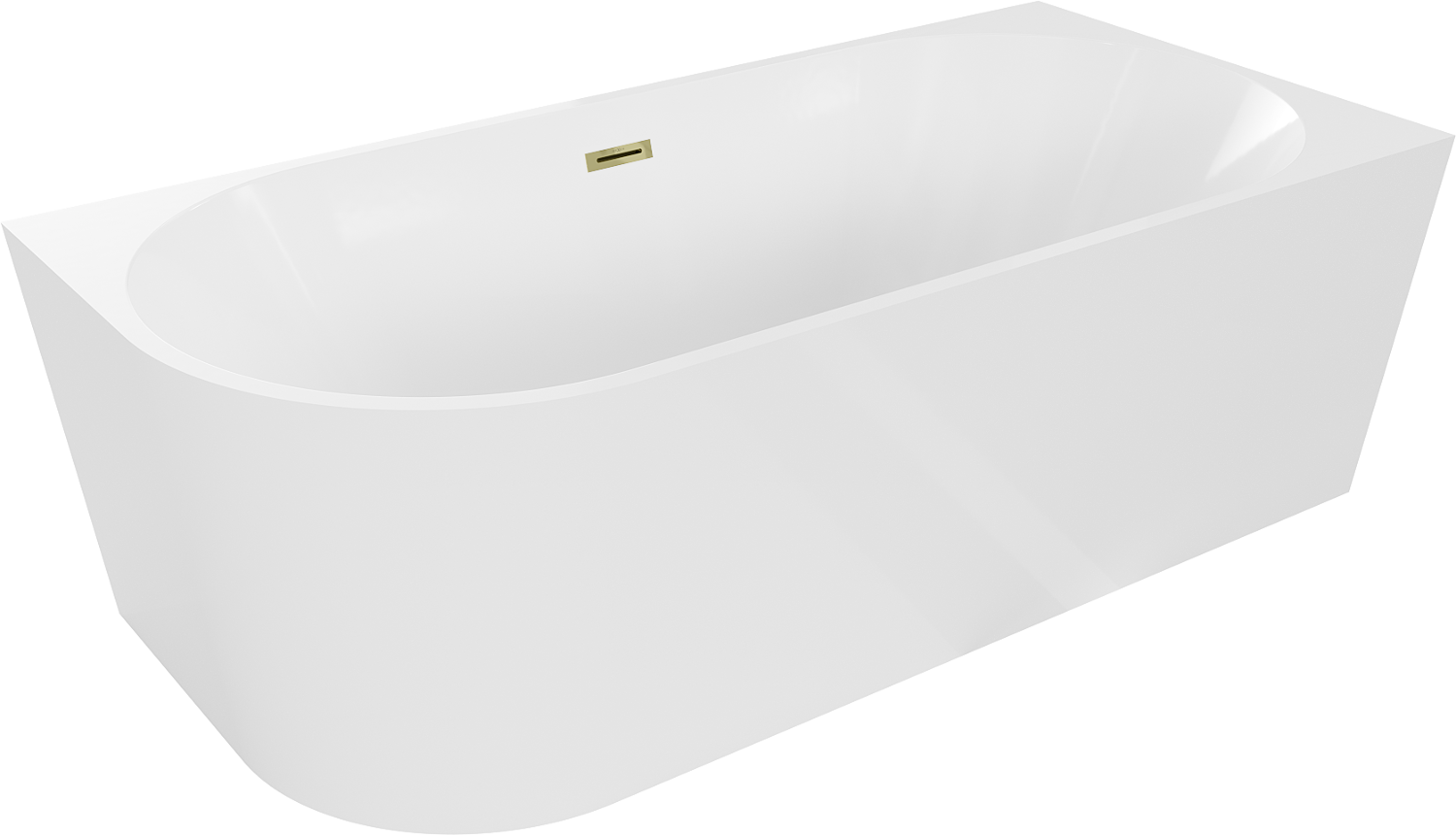 Mexen Mia banheira de canto independente direita 160 x 75 cm, branca, transbordamento dourado - 52691607500P-50