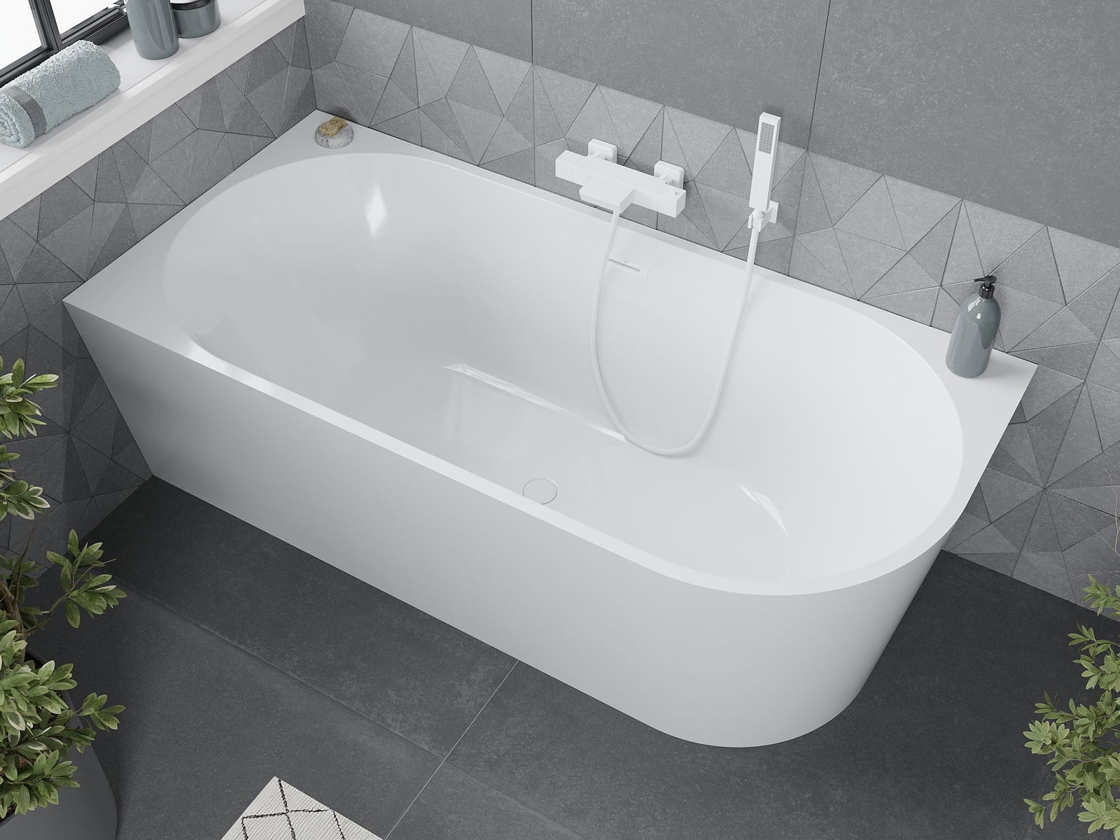 Mexen Mia banheira independente de canto esquerda 170 x 80 cm, branca, transbordo branco - 52691708000L-20