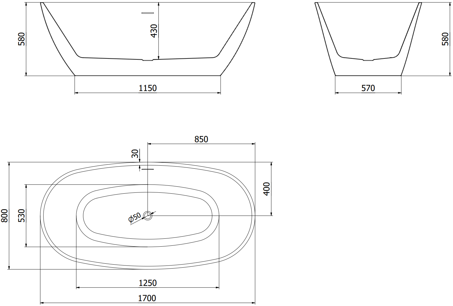 Mexen Eris banheira independente 170 x 80 cm, preta, transbordo cobre escovado - 53441708070-65