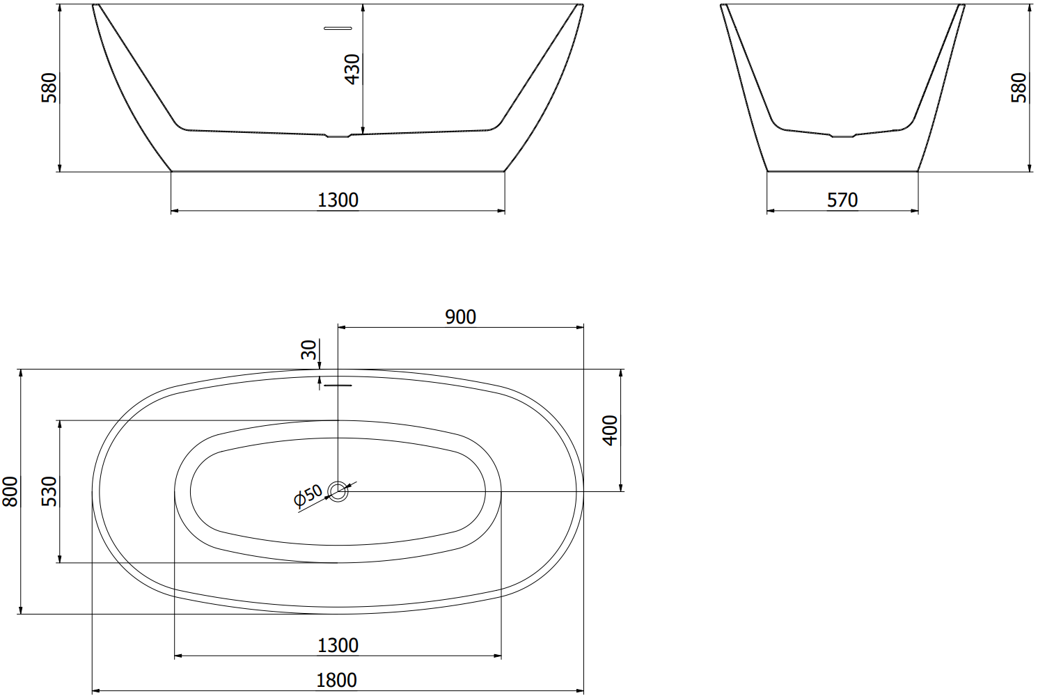 A banheira independente 180 x 80 cm em elegante combinação de acrílico branco e preto é um elemento estiloso para qualquer casa de banho. A sua forma oval e a superfície brilhante destacam o caráter moderno. Possui um orifício de transbordamento e sifão incluído, proporcionando conforto no uso diário. Resistente ao embaciamento e à radiação UV, encantará por muitos anos. Além disso, a montagem é simples graças à construção independente.