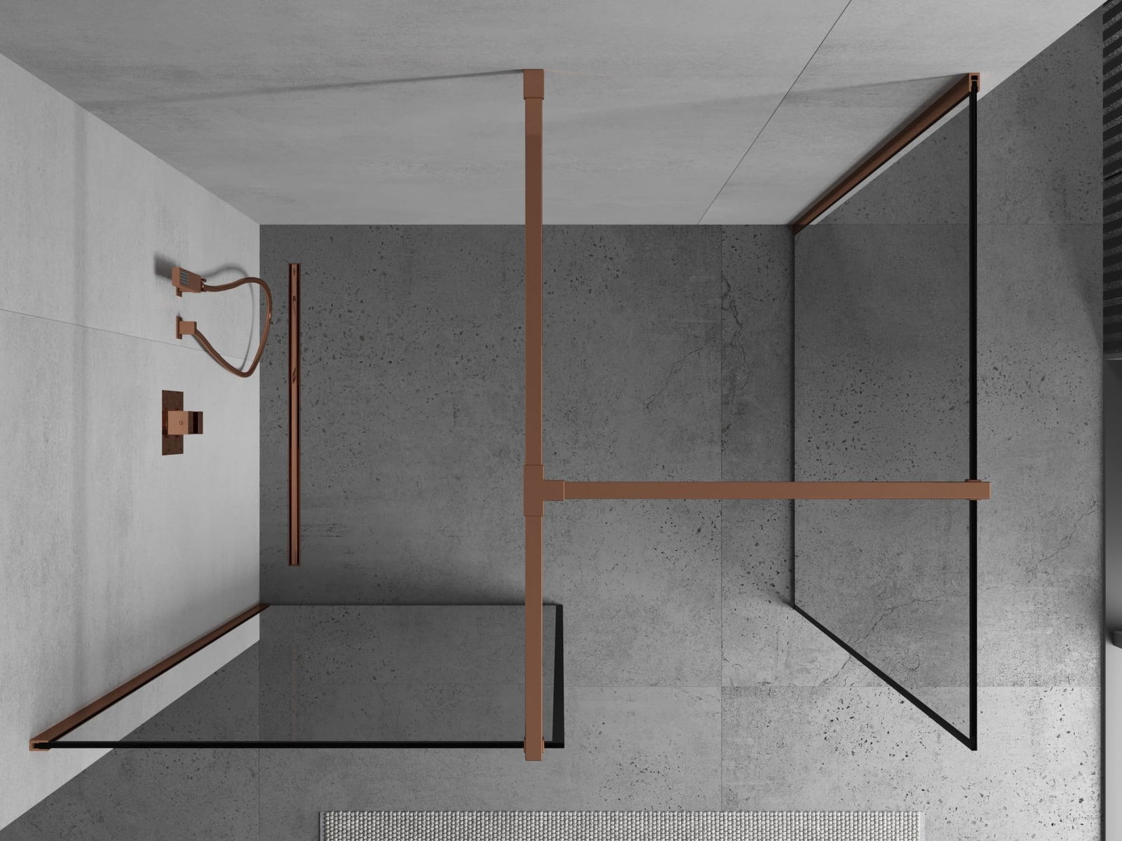 Mexen Kioto Painel de duche Walk-in 140 x 70 cm, moldura preta, ouro rosa - 800-140-202-60-70-070