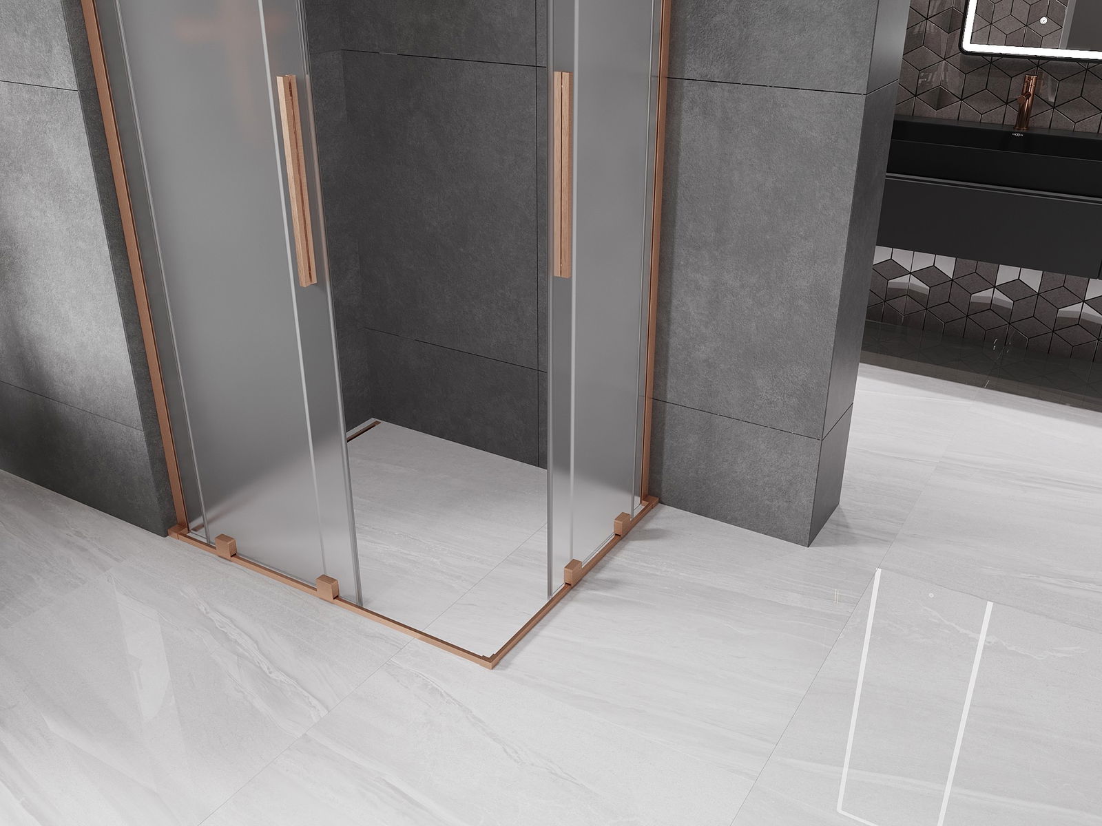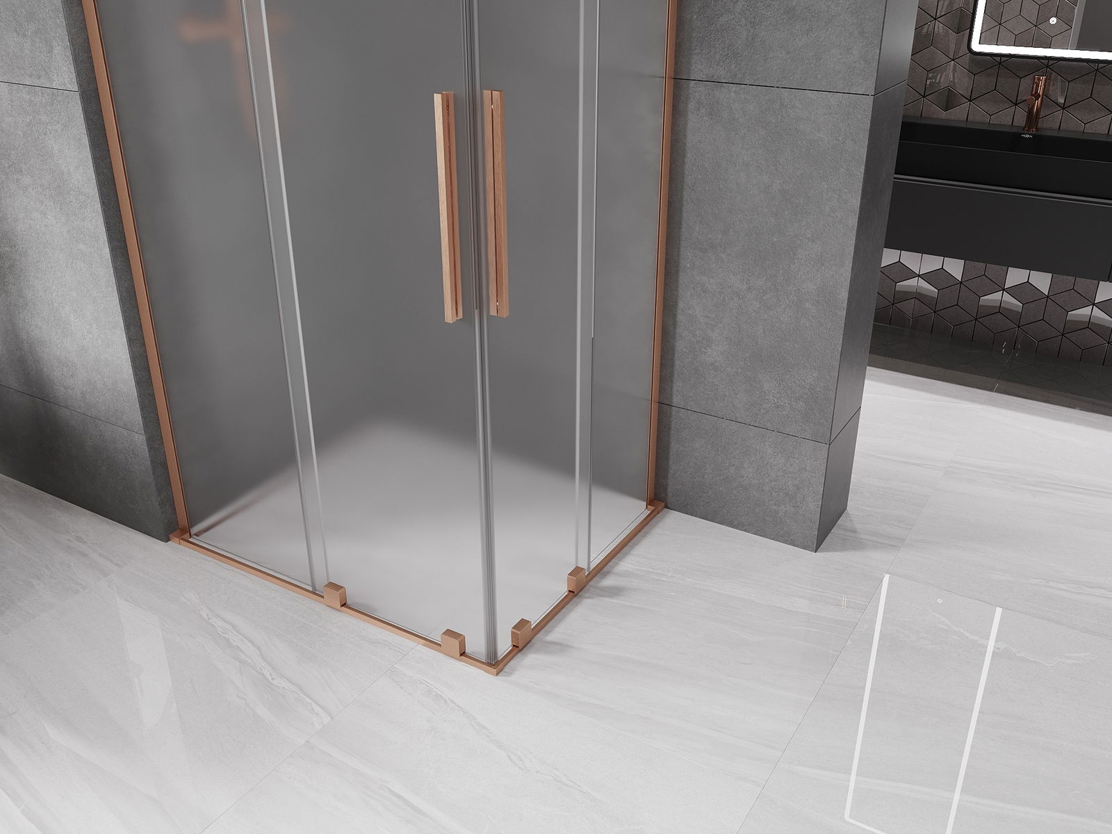 Mexen Velar L Cabine de duche dupla deslizante 100 x 90 cm, fosco, cobre escovado - 871-100-090-02-33-65
