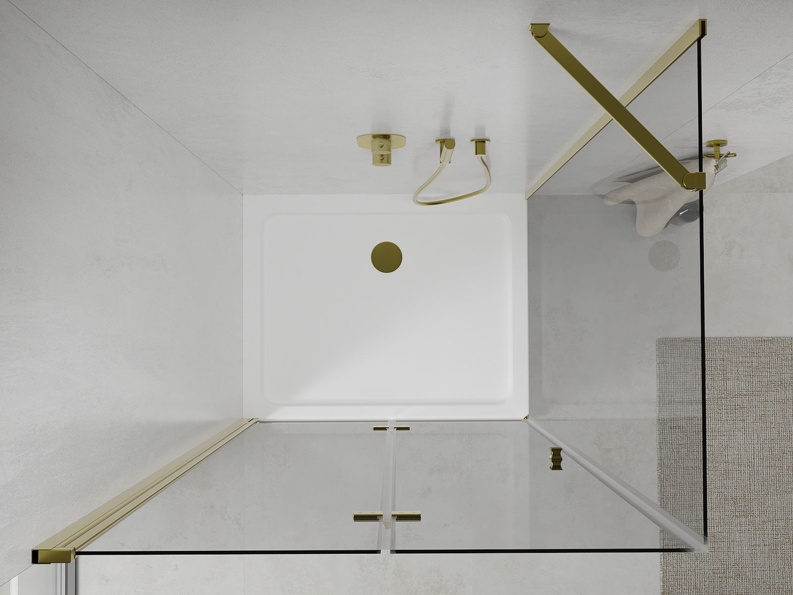 Mexen Lima cabine de duche dobrável 80 x 70 cm, transparente, dourada + base de duche Flat - 856-080-070-50-00-4010