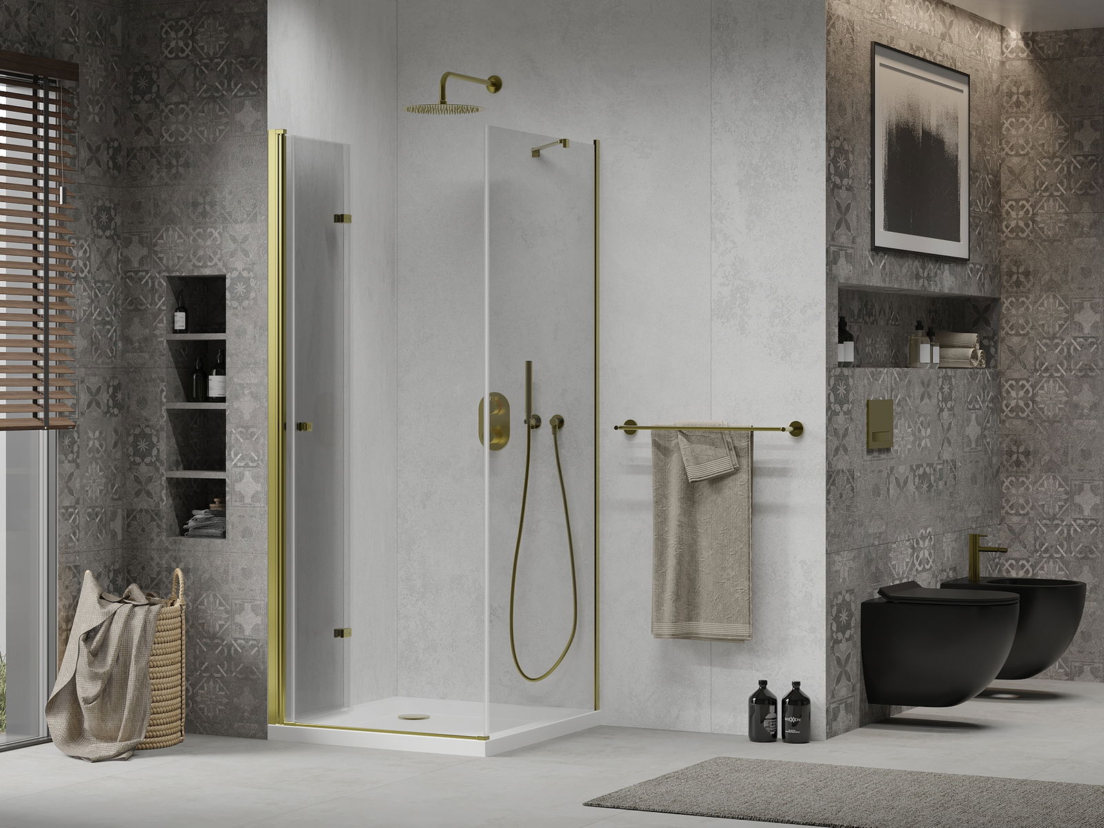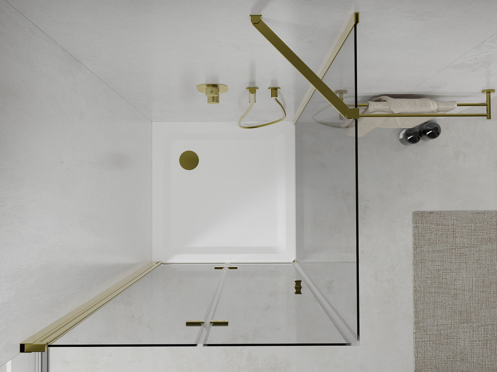 A pega prática e confortável foi feita de metal durável e resistente. A forma moderna combinada com o acabamento ajustado à cor dos perfis confere a todo o conjunto uma aparência moderna e estilosa, realçando a estética de qualquer casa de banho.