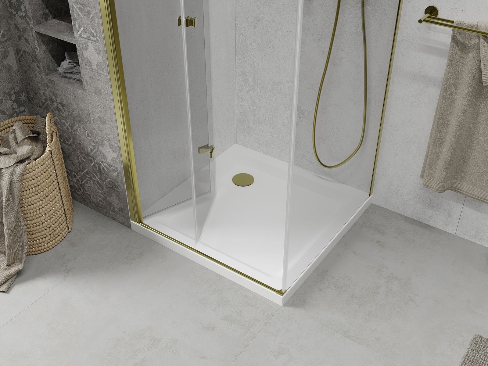 Mexen Lima cabine de duche dobrável 80 x 80 cm, transparente, dourada + base de duche Flat - 856-080-080-50-00-4010