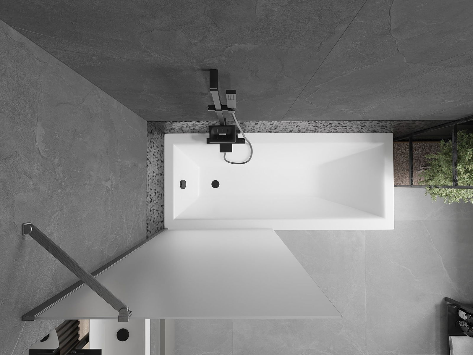 Proteção eficaz contra o derramamento de água durante o banho. O parapeito possui vedações que se ajustam perfeitamente à superfície do vidro e à borda da banheira. Solução funcional que garante segurança e fácil manutenção da limpeza.