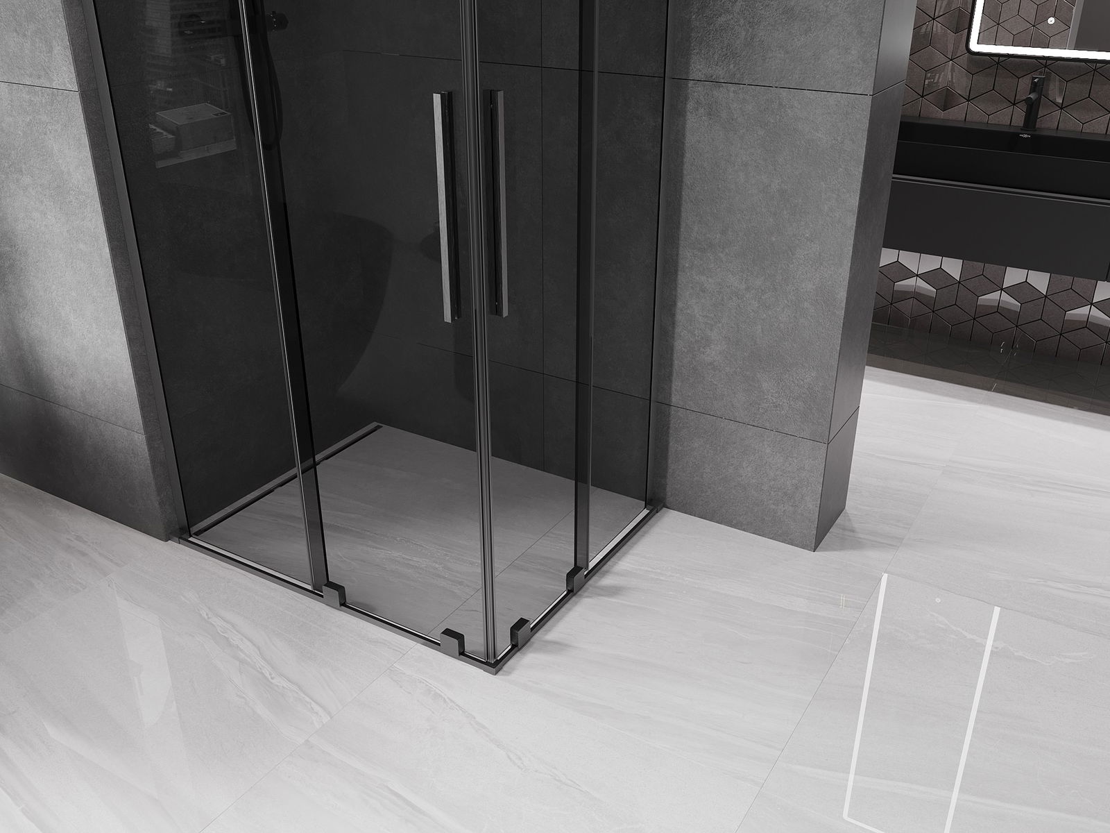 Mexen Velar L Duo cabine de duche deslizante 90 x 80 cm, grafite, cinza metalizado escovado - 871-090-080-02-43-66