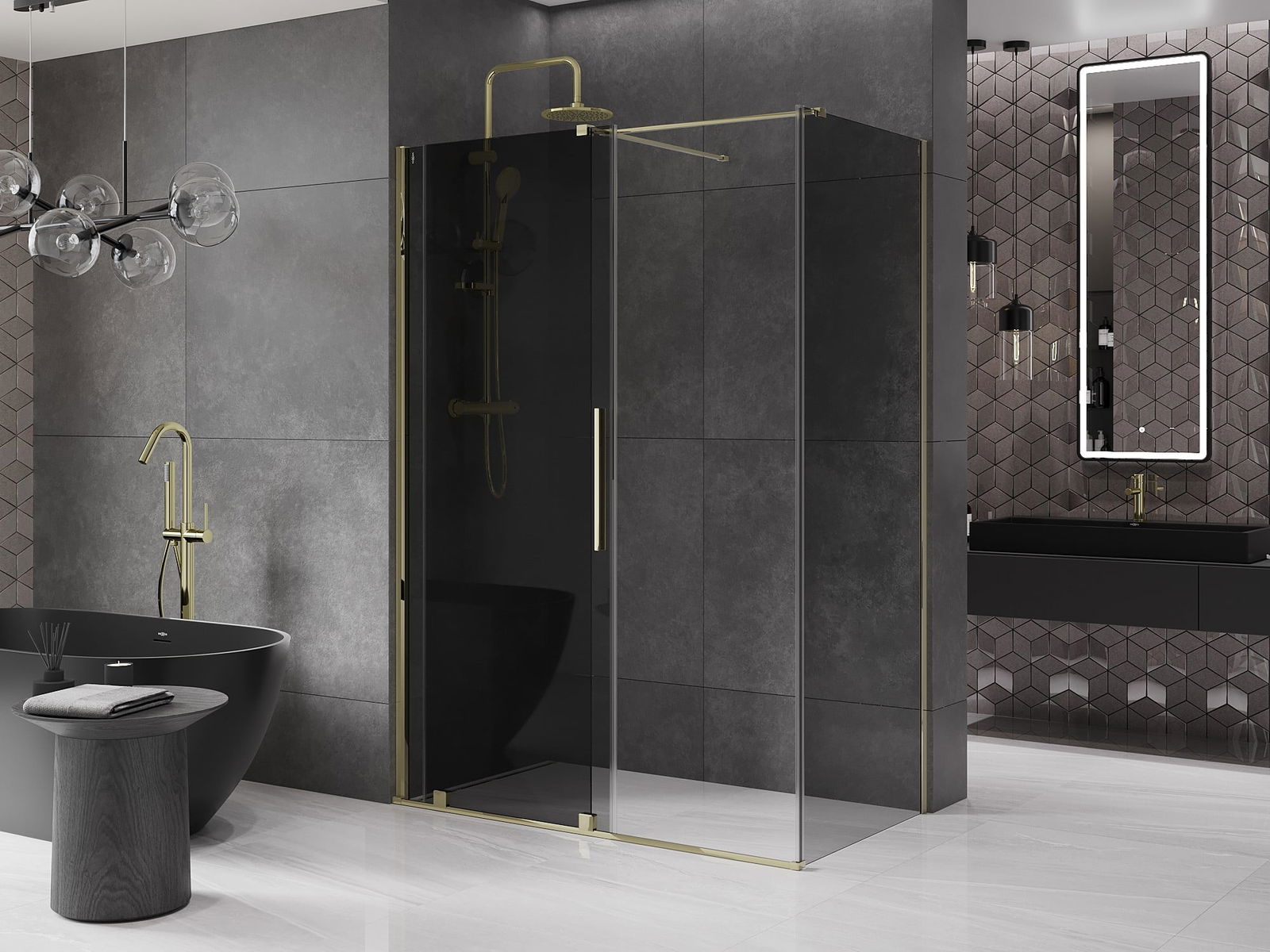 Mexen Velar cabine de duche deslizante 150 x 70 cm, grafite, dourada - 871-150-070-41-50
