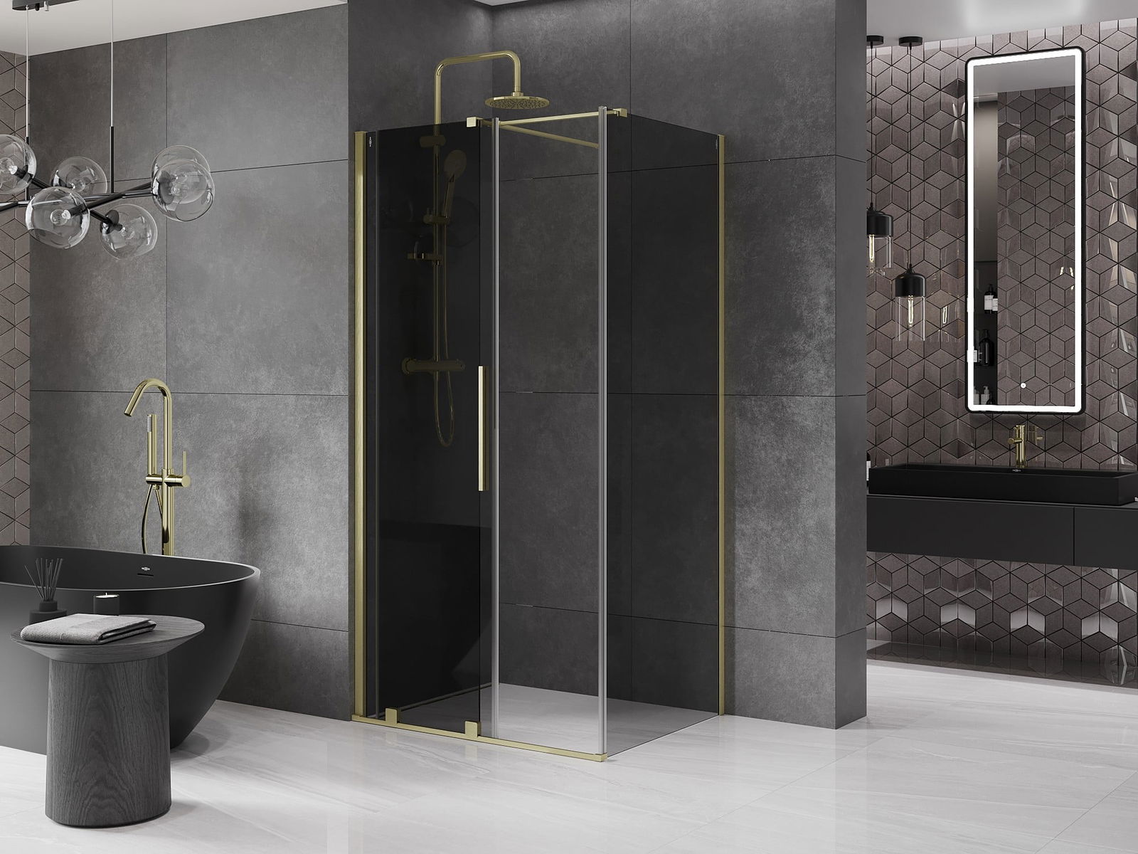 Mexen Velar cabine de duche deslizante 90 x 75 cm, grafite, dourado escovado - 871-090-075-41-55