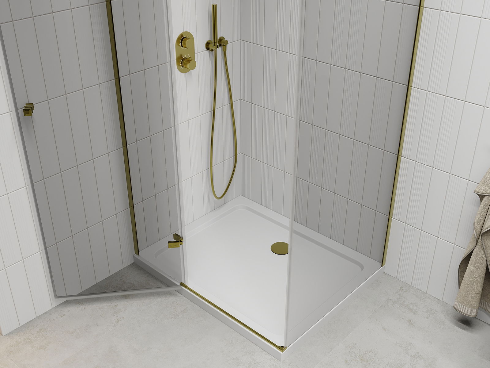 Mexen Roma cabine de duche com portas de abrir 70 x 90 cm, transparente, dourada + base de duche Flat - 854-070-090-50-00-4010