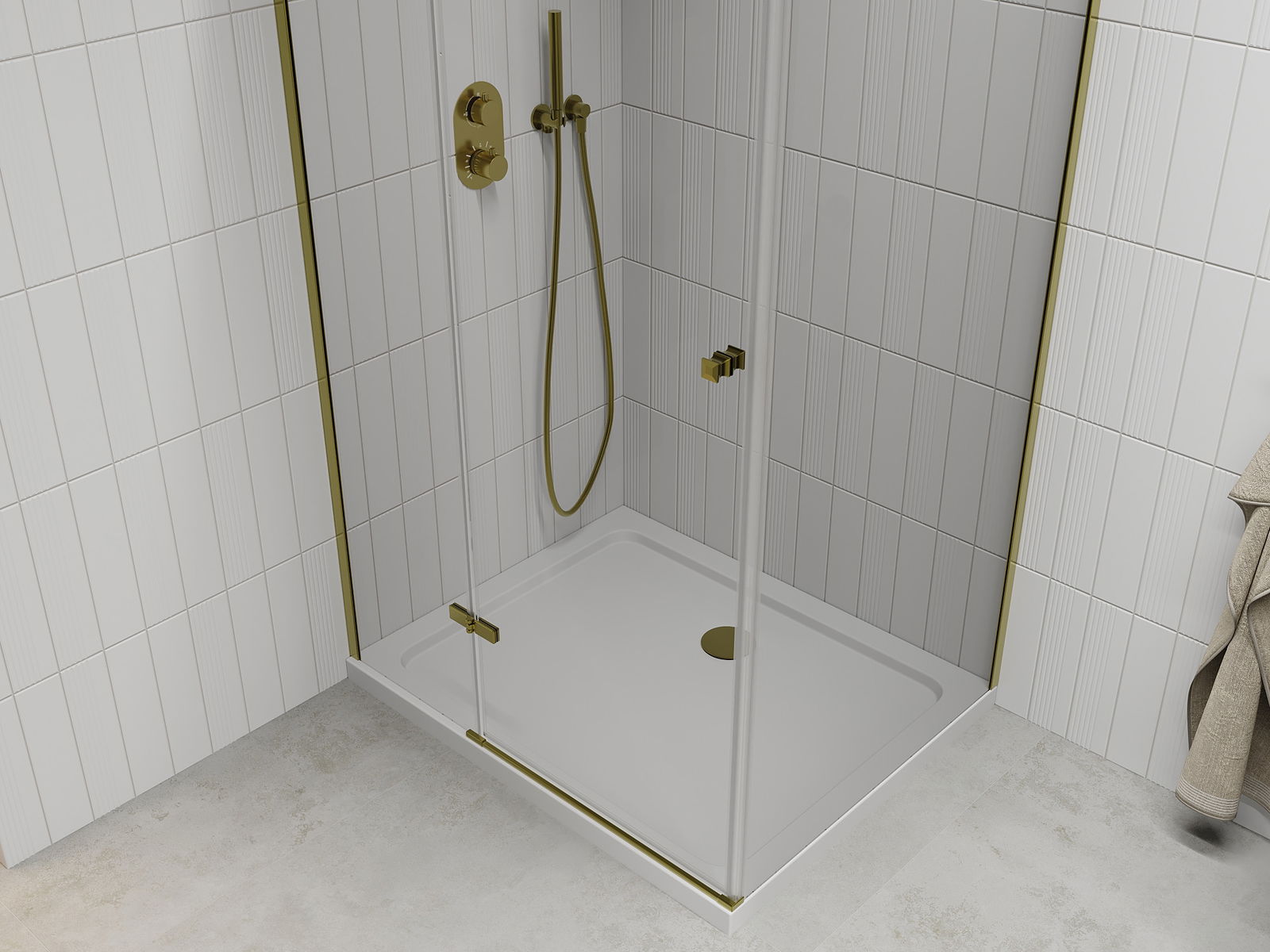 A pega prática e confortável foi feita de metal durável e resistente. A forma moderna combinada com o acabamento ajustado à cor dos perfis confere a todo o conjunto uma aparência moderna e estilosa, realçando a estética de qualquer casa de banho.