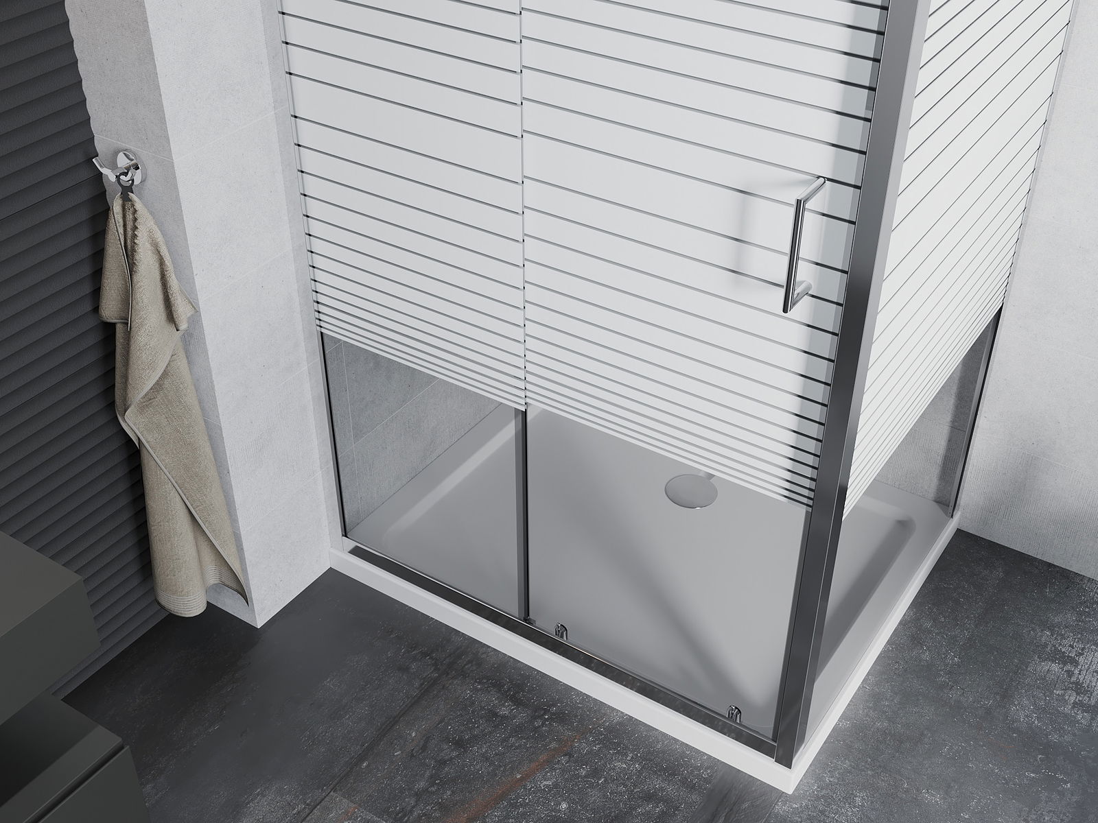 Mexen Apia cabine de duche de correr 130 x 100 cm, faixas brancas, cromada + base de duche Flat - 840-130-100-01-20-4010