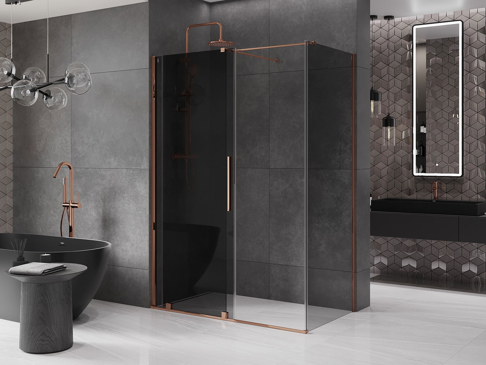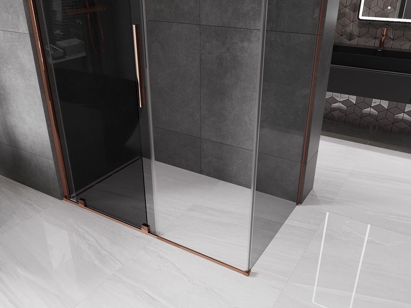 Mexen Velar cabine de duche deslizante 150 x 90 cm, grafite, ouro rosa - 871-150-090-41-60