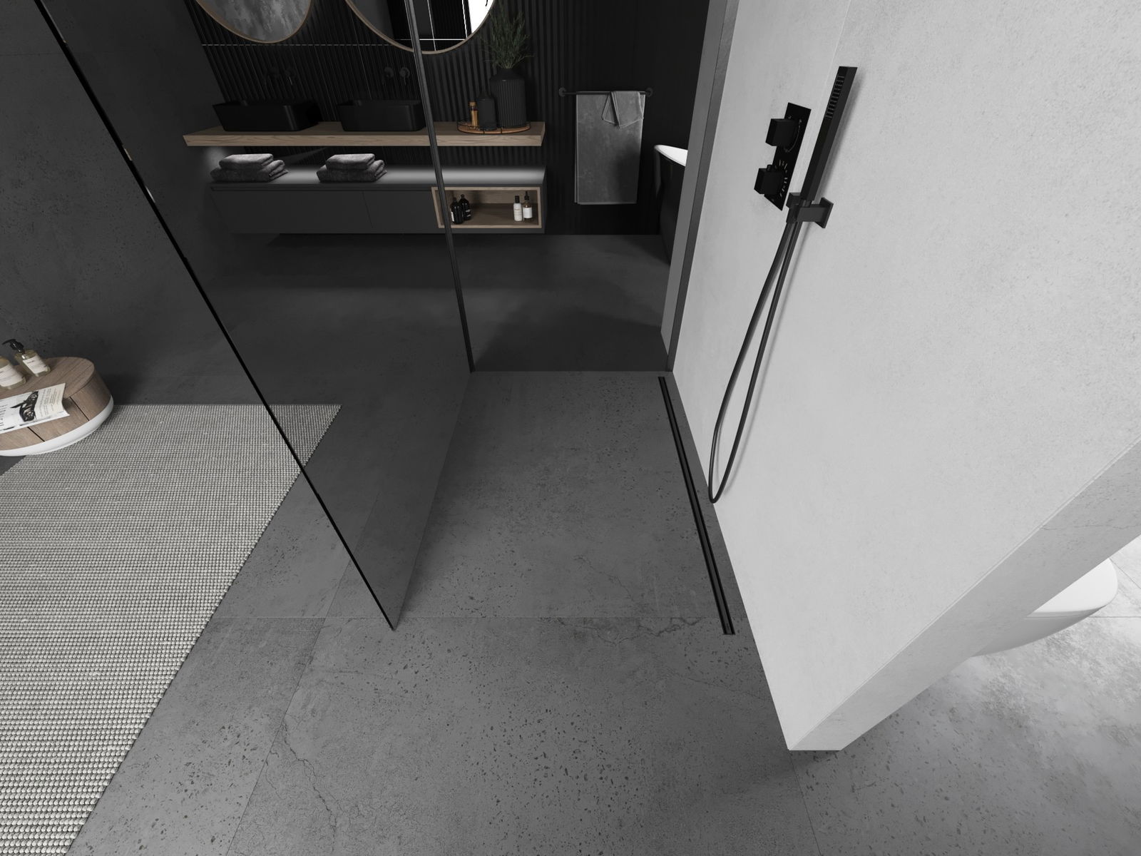 O produto, dependendo das necessidades, pode ser montado tanto no chuveiro como diretamente no chão. O método de montagem universal permite adaptar o produto a diferentes tipos de casas de banho e configurações de espaço.