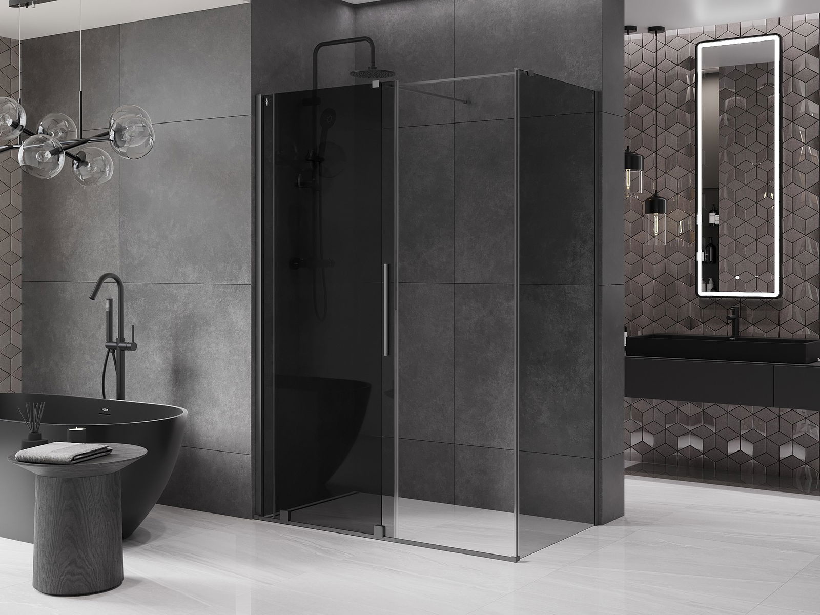 Pega prática e confortável feita de aço inoxidável. A forma moderna, combinada com o acabamento adaptado à cor dos perfis, dá ao conjunto uma aparência moderna e estilosa, realçando a estética de qualquer casa de banho.