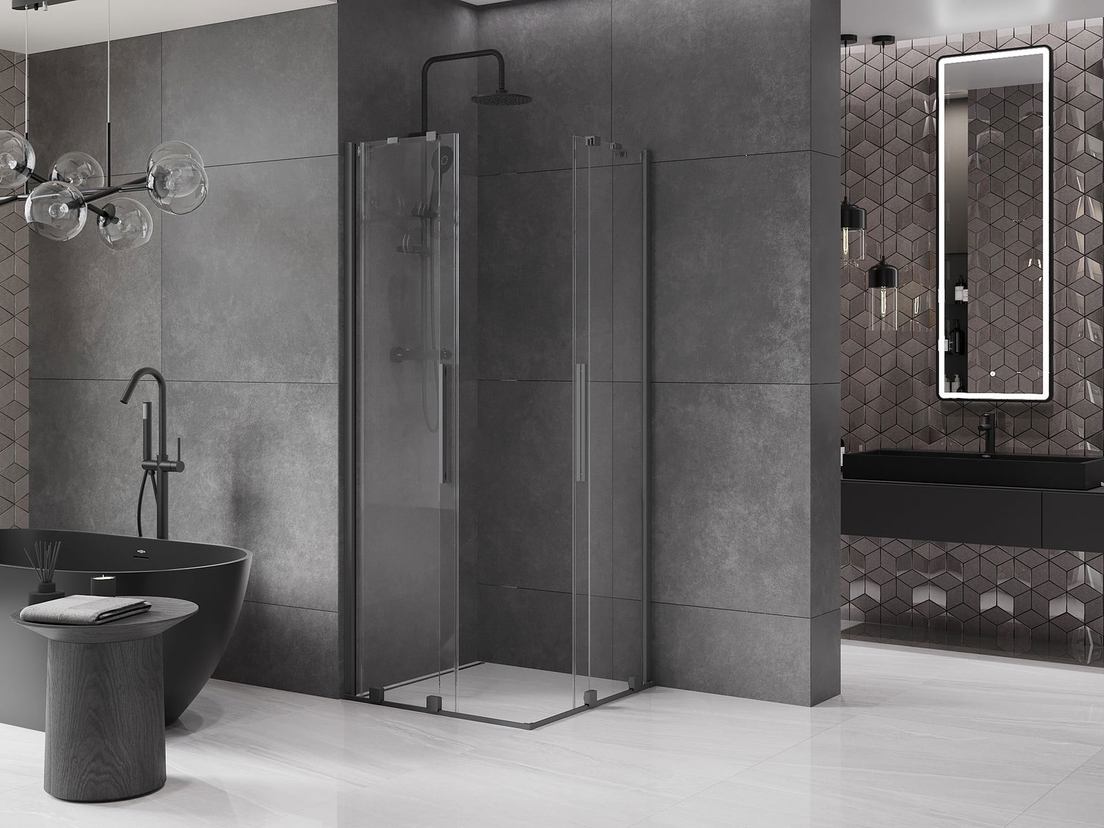 Mexen Velar Duo cabine de duche deslizante 90 x 90 cm, transparente, metal canhão - 871-090-090-02-95