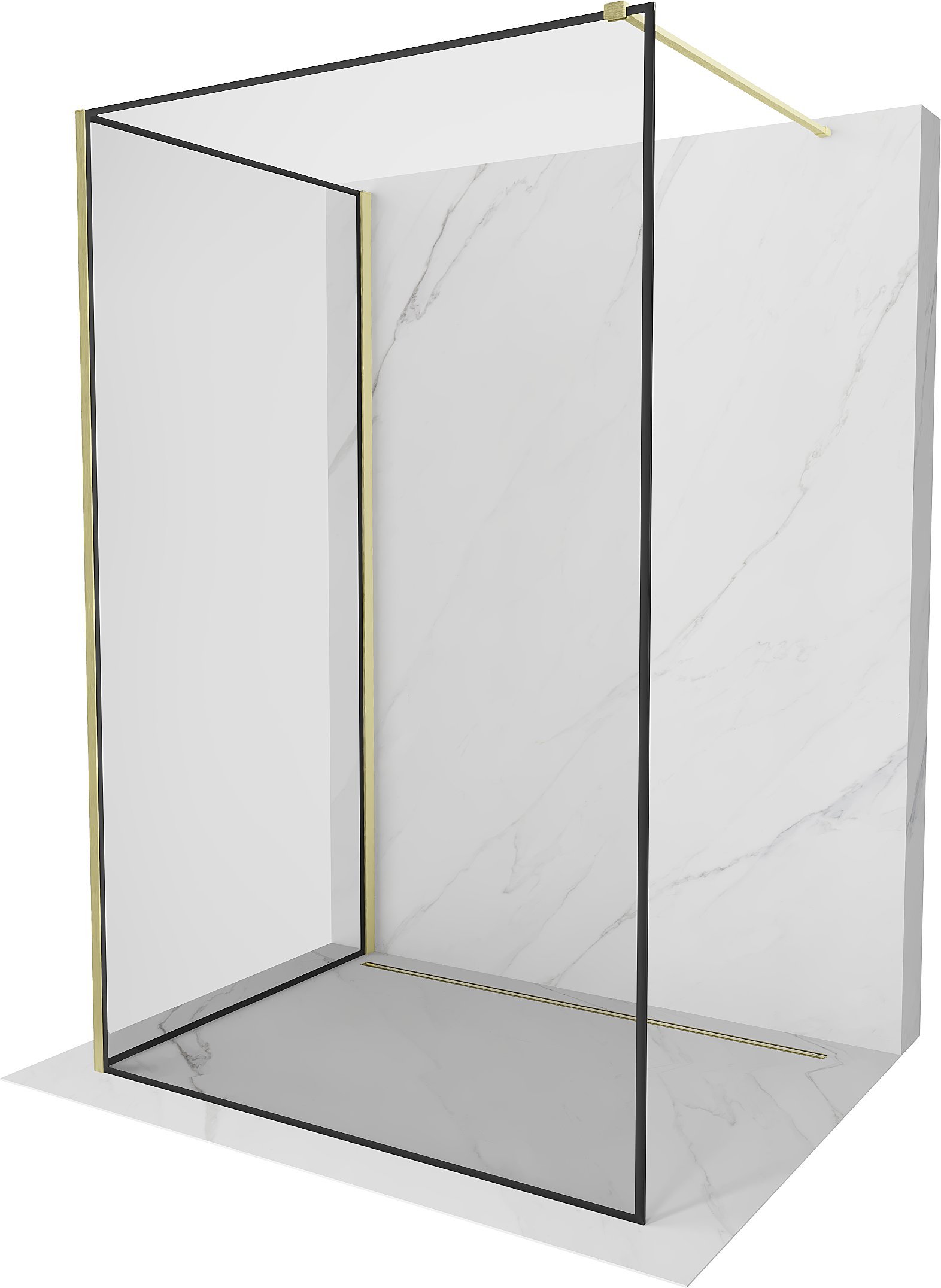 Mexen Kioto Parede de duche Walk-in 130 x 80 cm, moldura preta, dourada escovada - 800-130-212-55-70-080