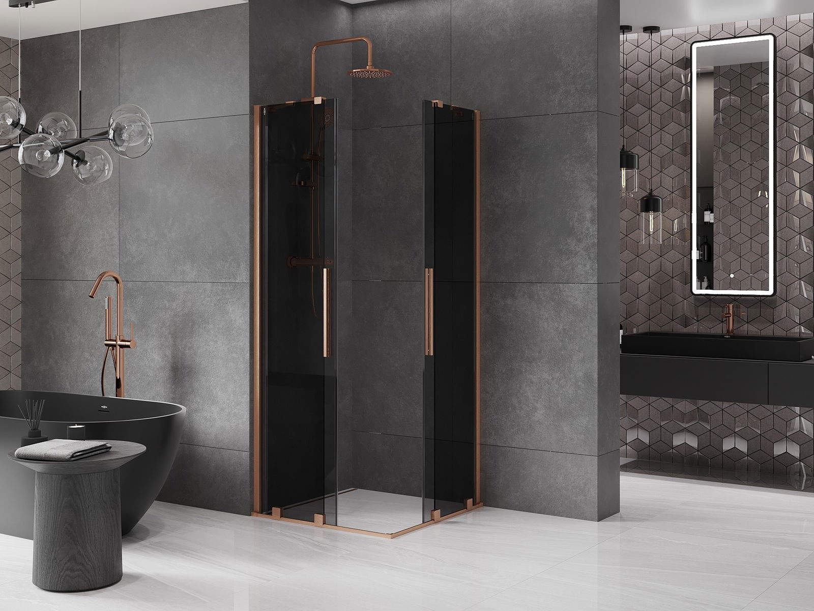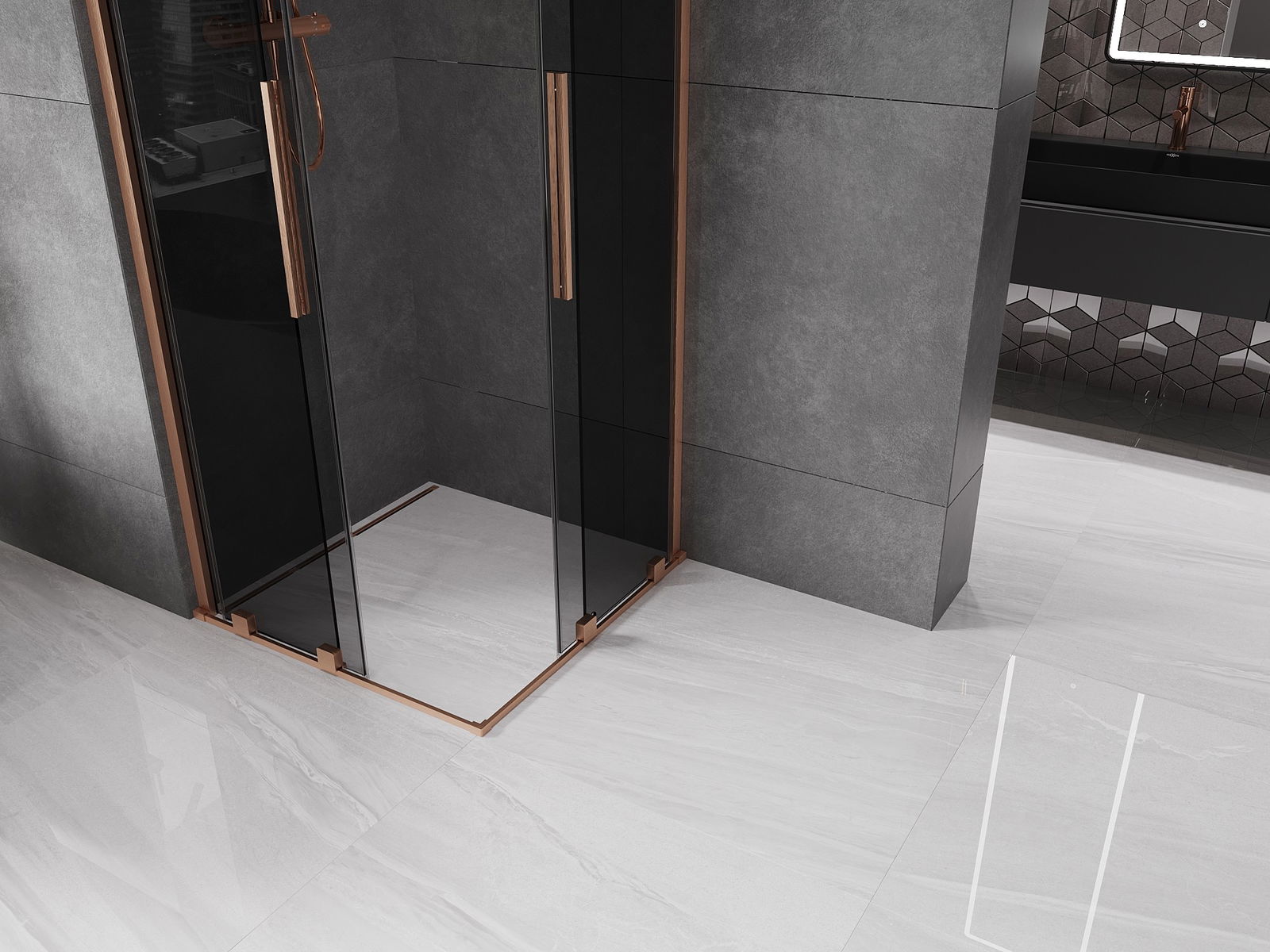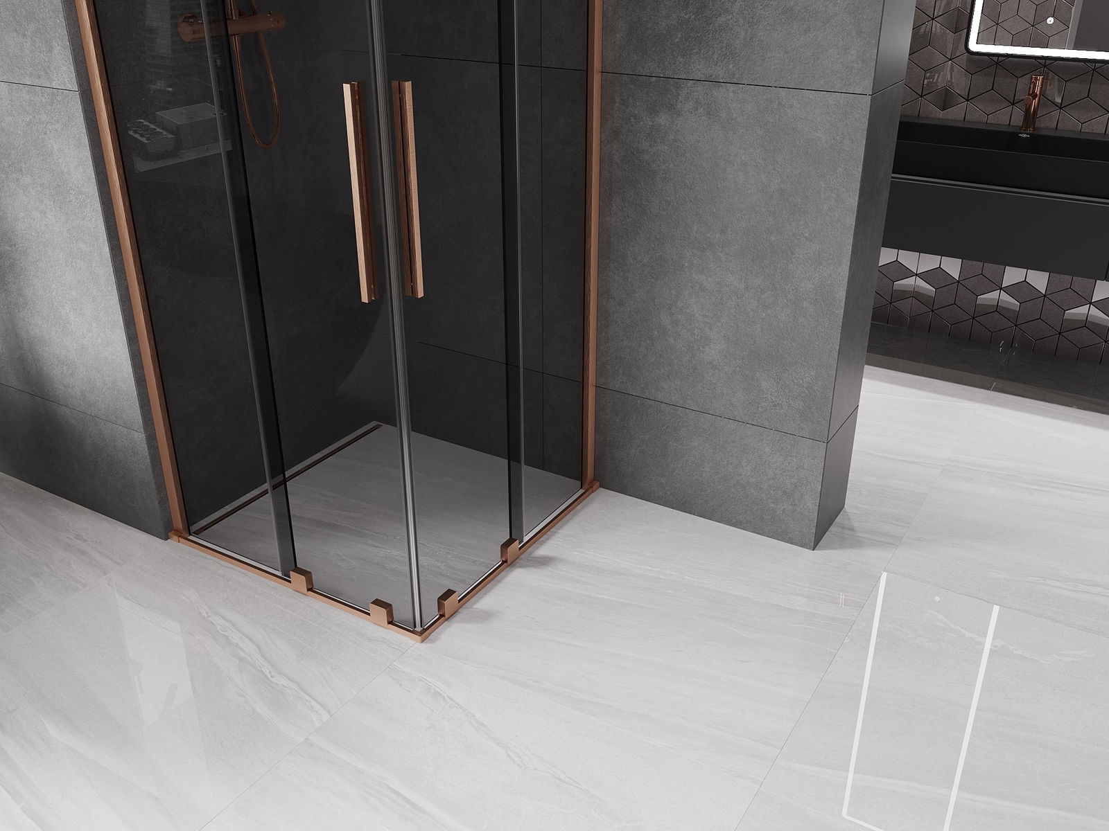 Mexen Velar Duo cabine de duche deslizante 90 x 90 cm, grafite, cobre escovado - 871-090-090-42-65