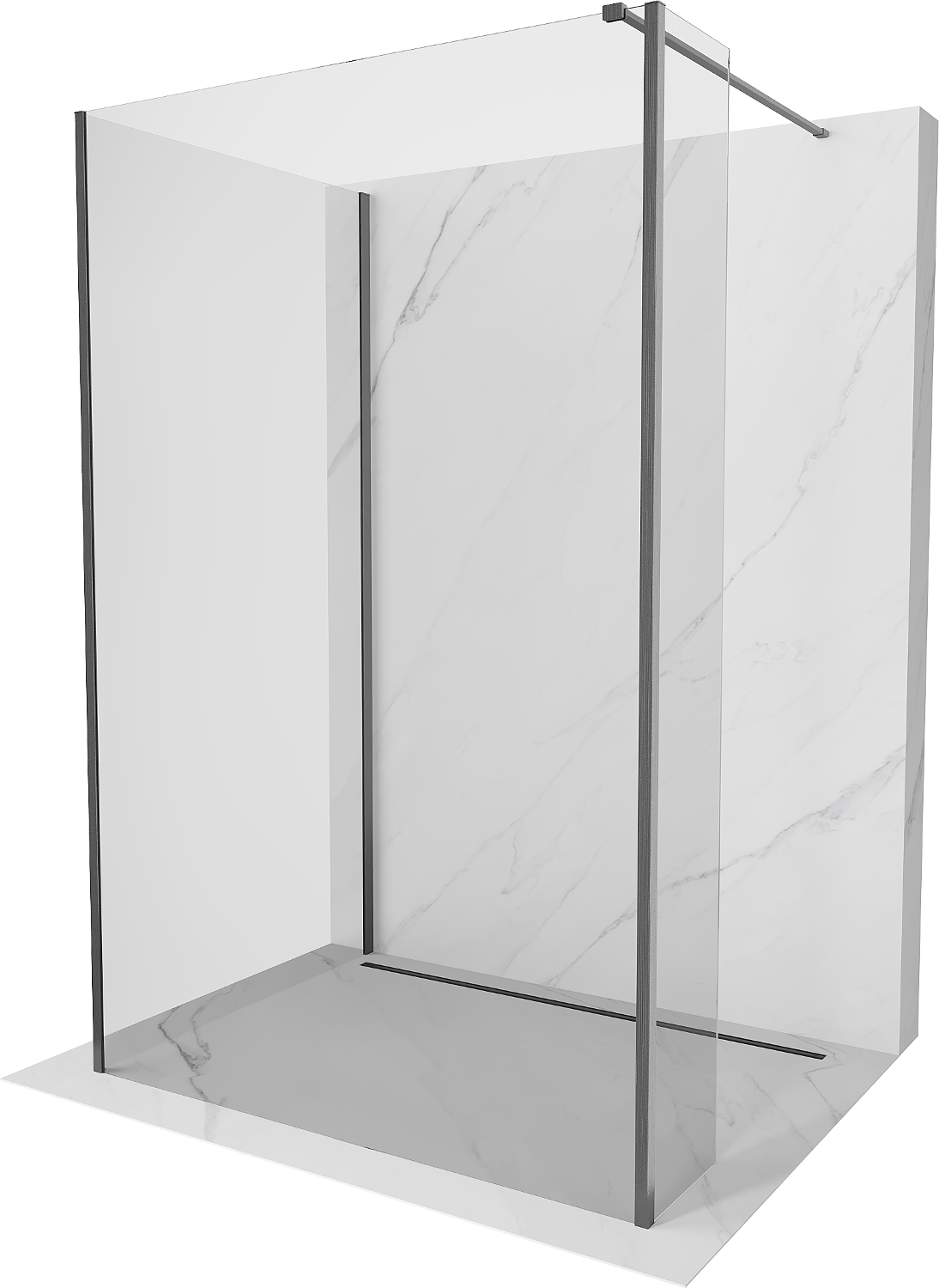 Mexen Kioto Parede de duche Walk-in 130 x 85 x 30 cm, transparente, cinza metalizado escovado - 800-130-085-221-66-00-030