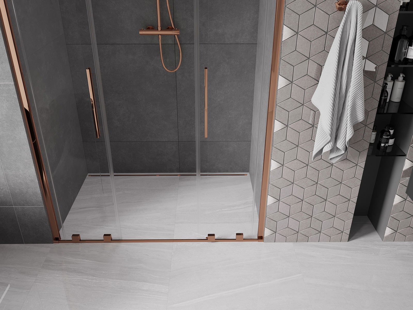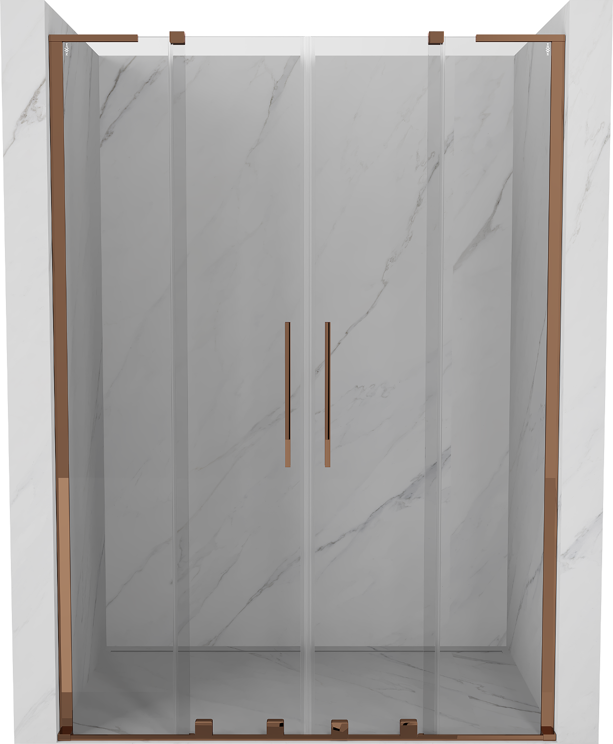 Mexen Velar Duo L portas de duche deslizantes 160 cm, transparentes, ouro rosa - 871-160-003-02-60