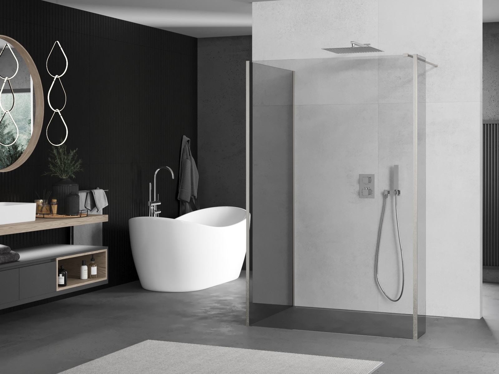 O produto, dependendo das necessidades, pode ser montado tanto no chuveiro como diretamente no chão. O método de montagem universal permite adaptar o produto a diferentes tipos de casas de banho e configurações de espaço.