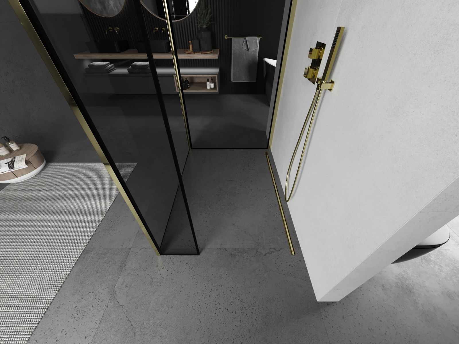 Mexen Kioto parede de chuveiro Walk-in 130 x 90 x 30 cm, moldura preta, dourada - 800-130-090-221-50-70-030