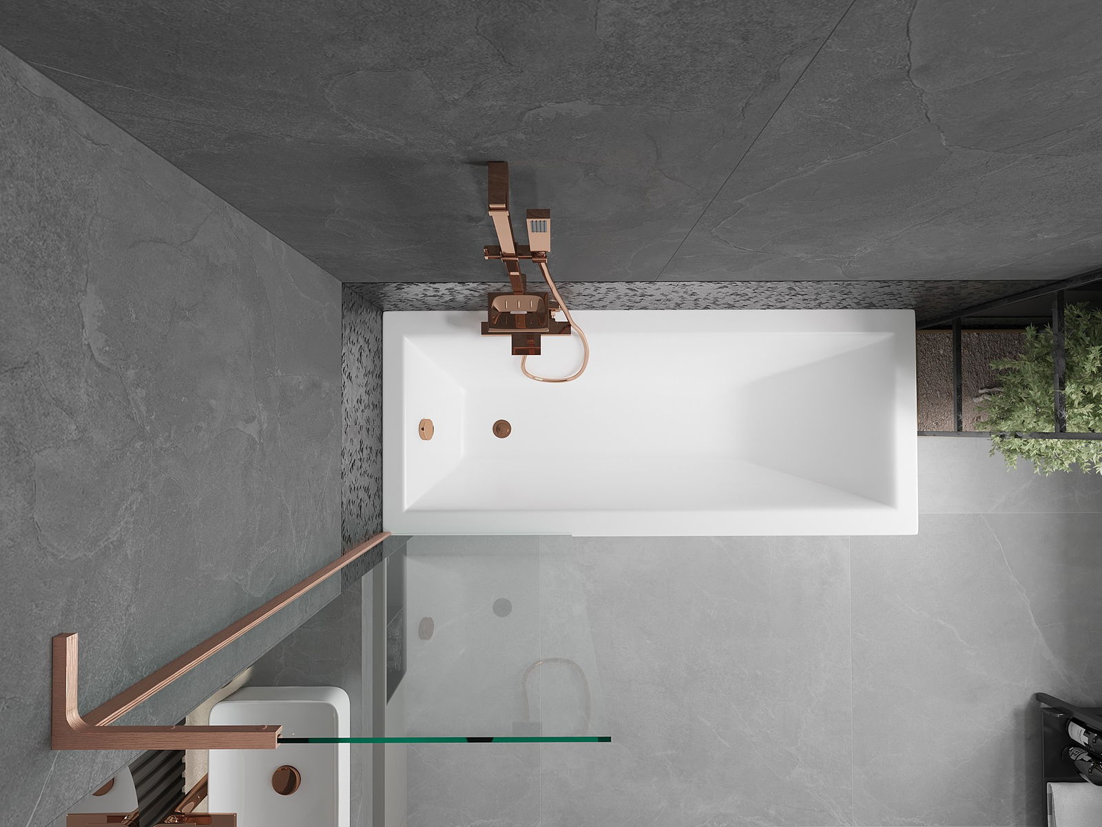 Mexen Next L divisória de banho com 1 folha 60 x 150 cm, transparente, cobre escovado - 895-060-000-03-00-65