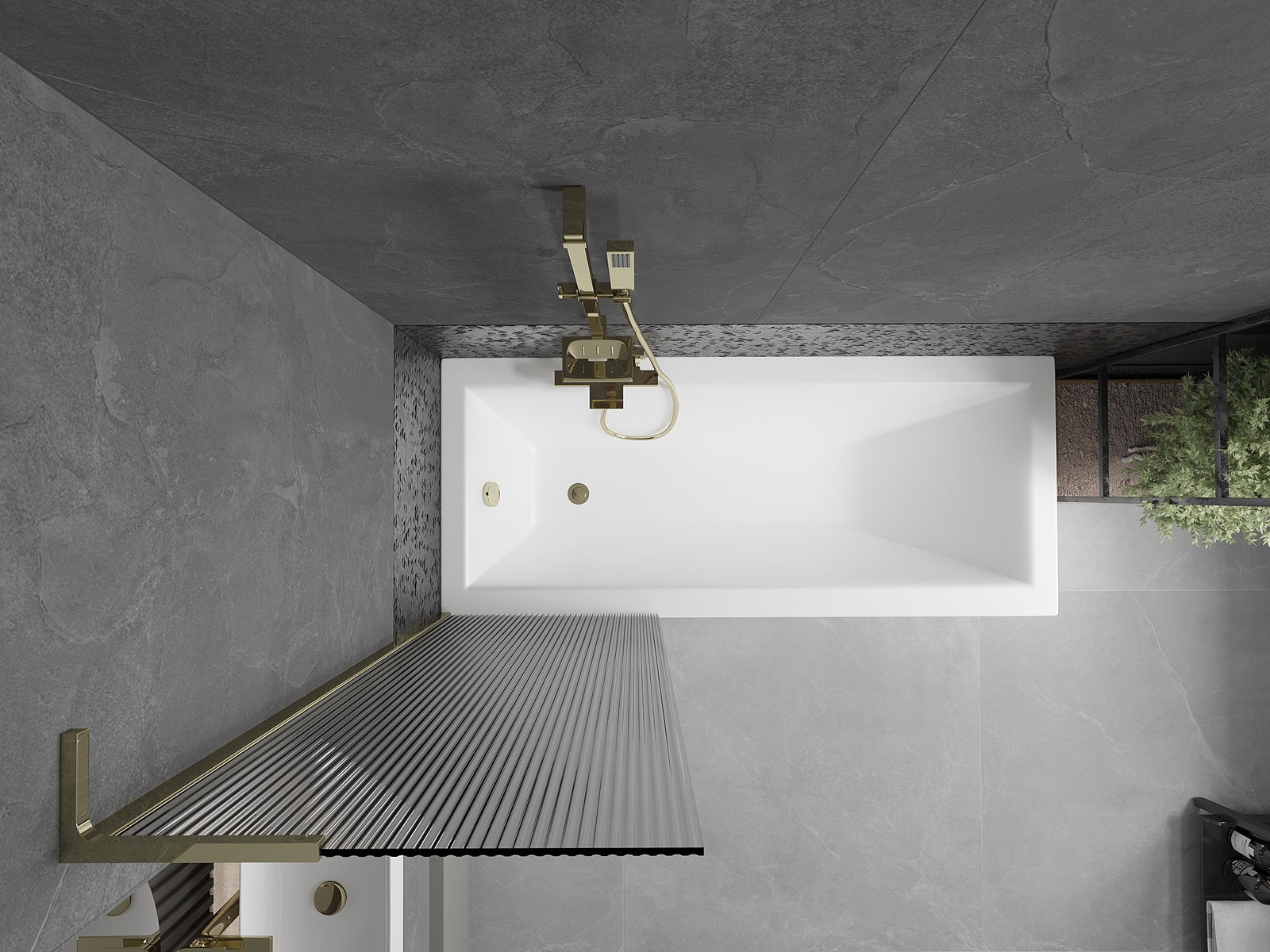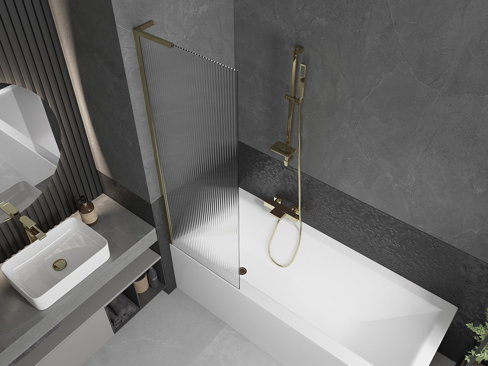 Mexen Next L divisória de banheira com 1 painel 60 x 150 cm, riscas, dourado - 895-060-000-03-09-50