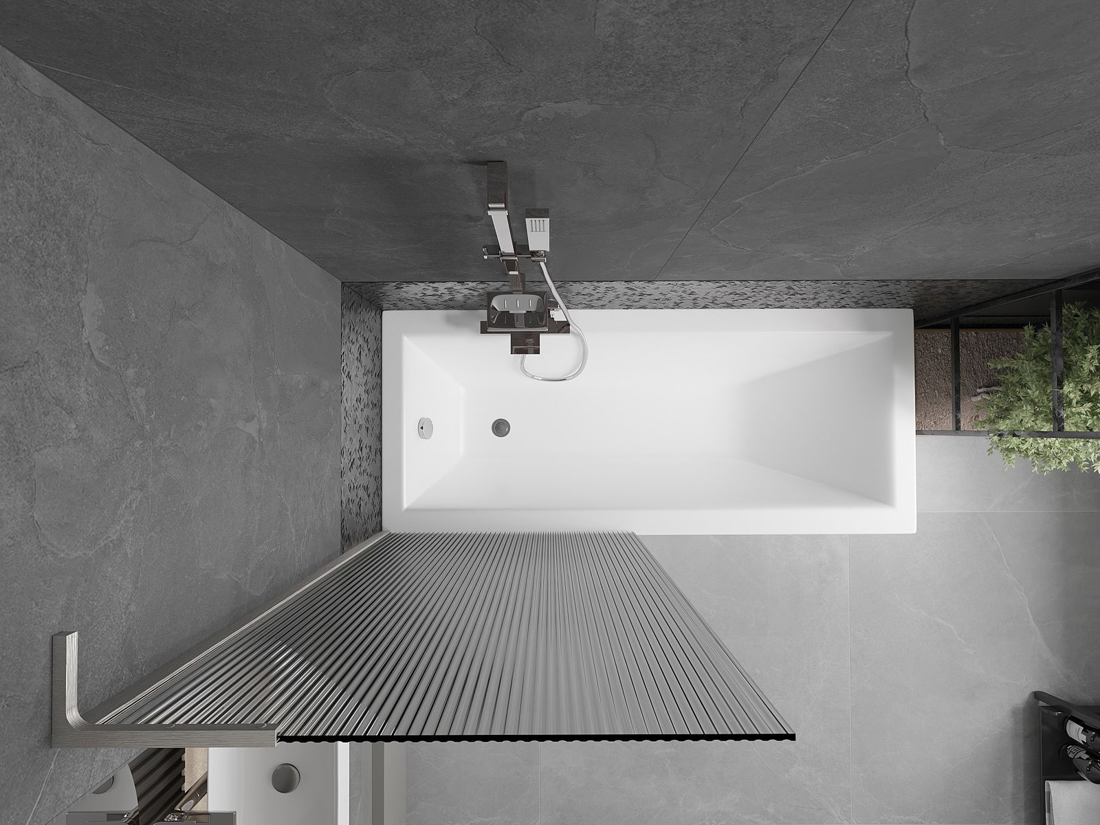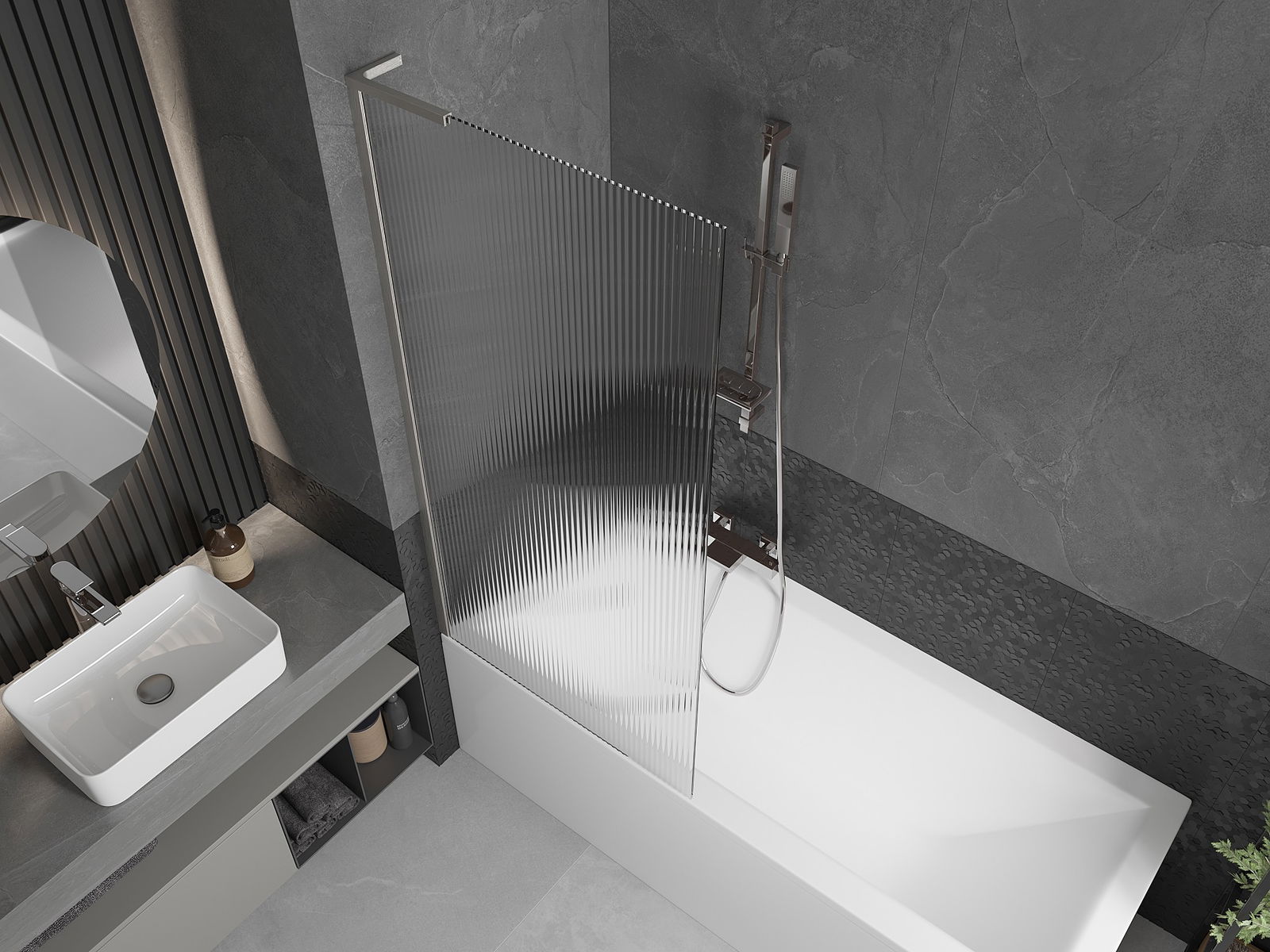 Mexen Next L divisória de banho com 1 folha 80 x 150 cm, riscas, níquel escovado - 895-080-000-03-09-97