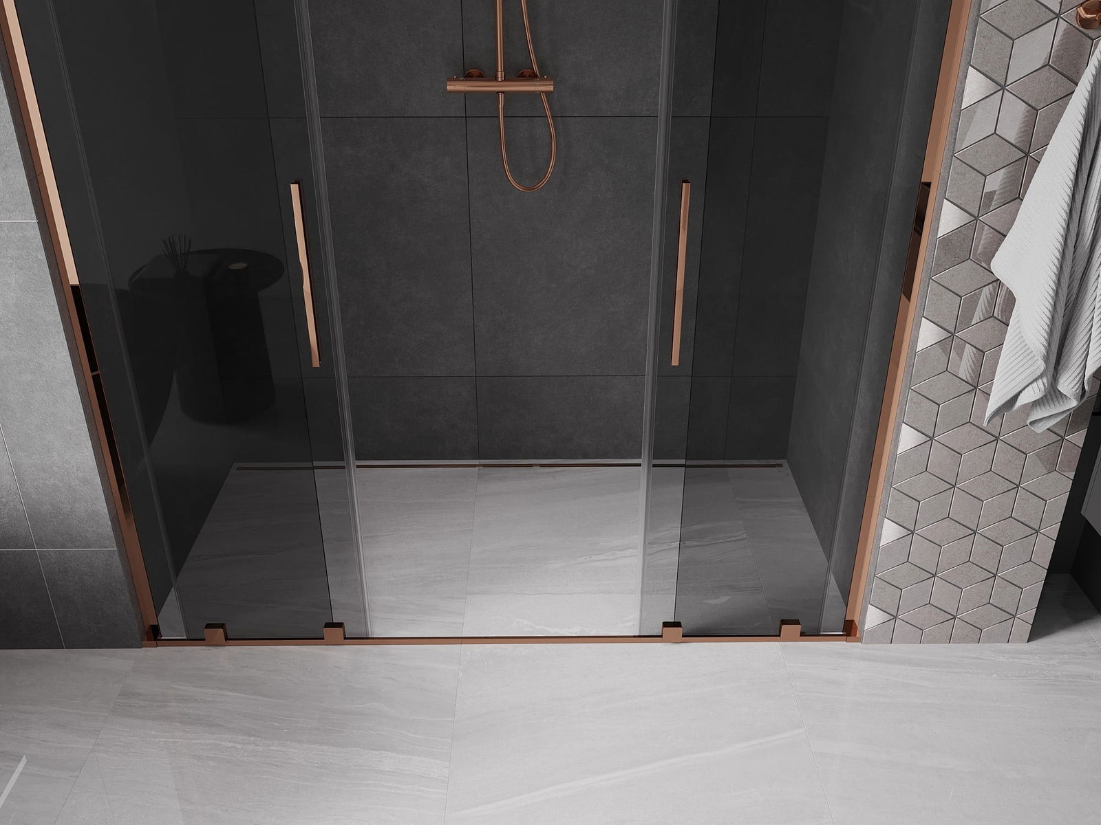 Mexen Velar L Duo portas de chuveiro de correr 200 cm, grafite, ouro rosa - 871-200-003-42-60